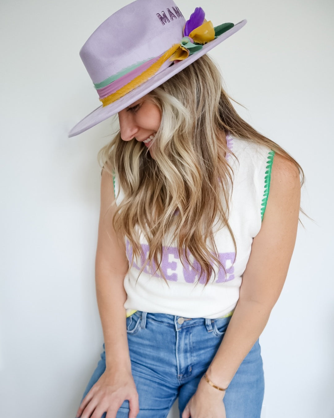 Design your own custom hat in person at our Mandeville studio or order online, and we’ll ship it to you! You select the style, and we’ll personalize it with details like custom ribbons, feathers, your initials and more.