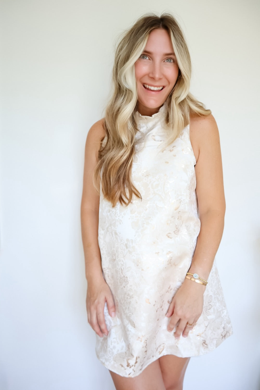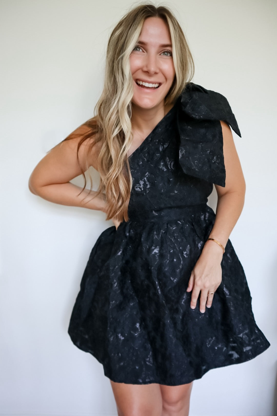 Mandy Jacquard Ivine Bow One Shoulder Dress