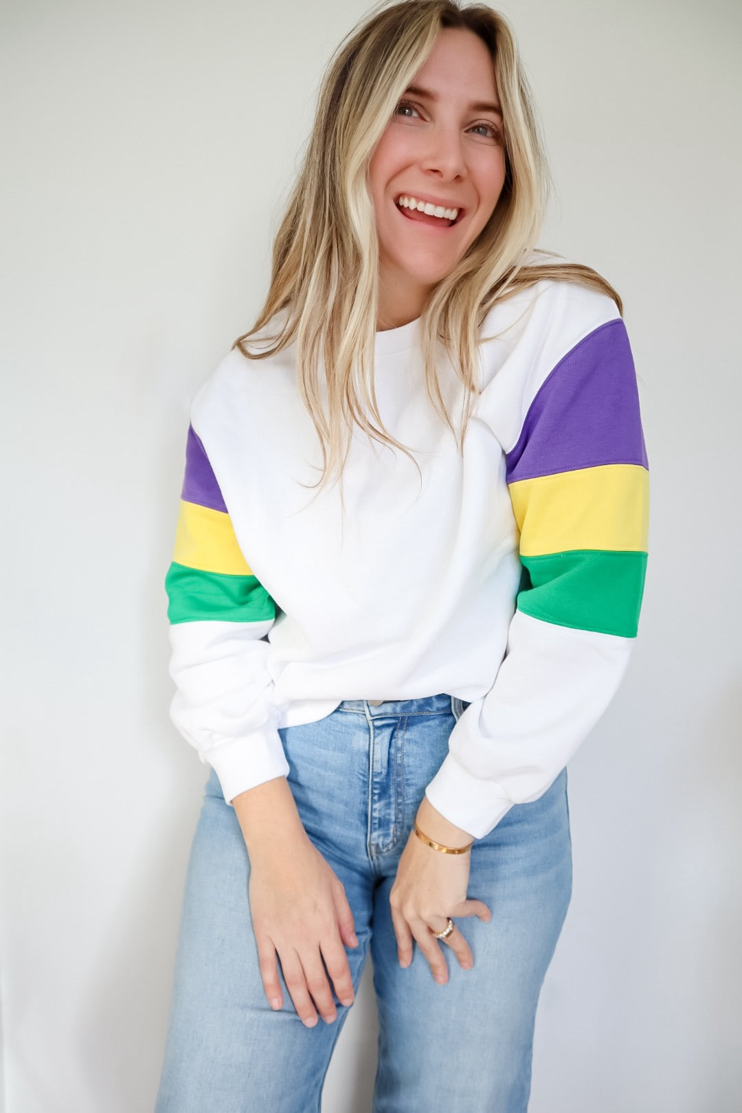 Mardi Gras Color Block Long Sleeve Sweatshirt