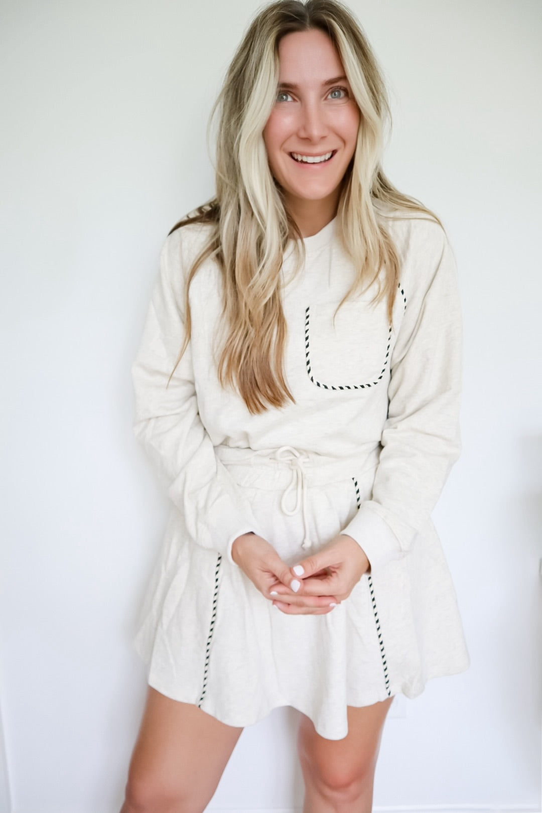 Tyler Front Pocket Piping Detail Sweatshirt & Skort Set