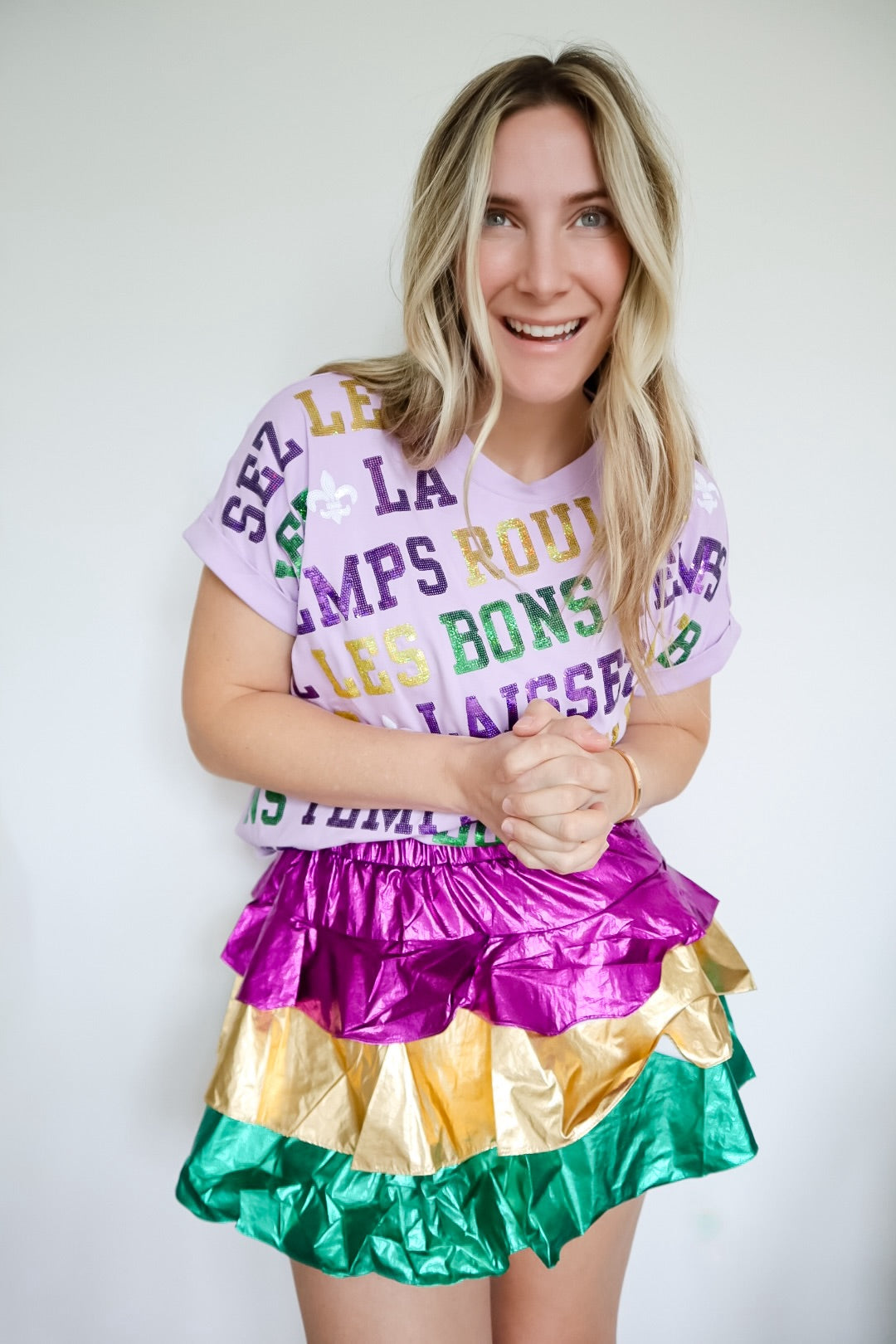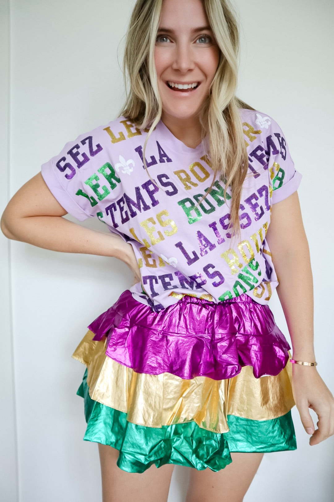 Mardi Gras Color Block Metallic Tiered Skirt