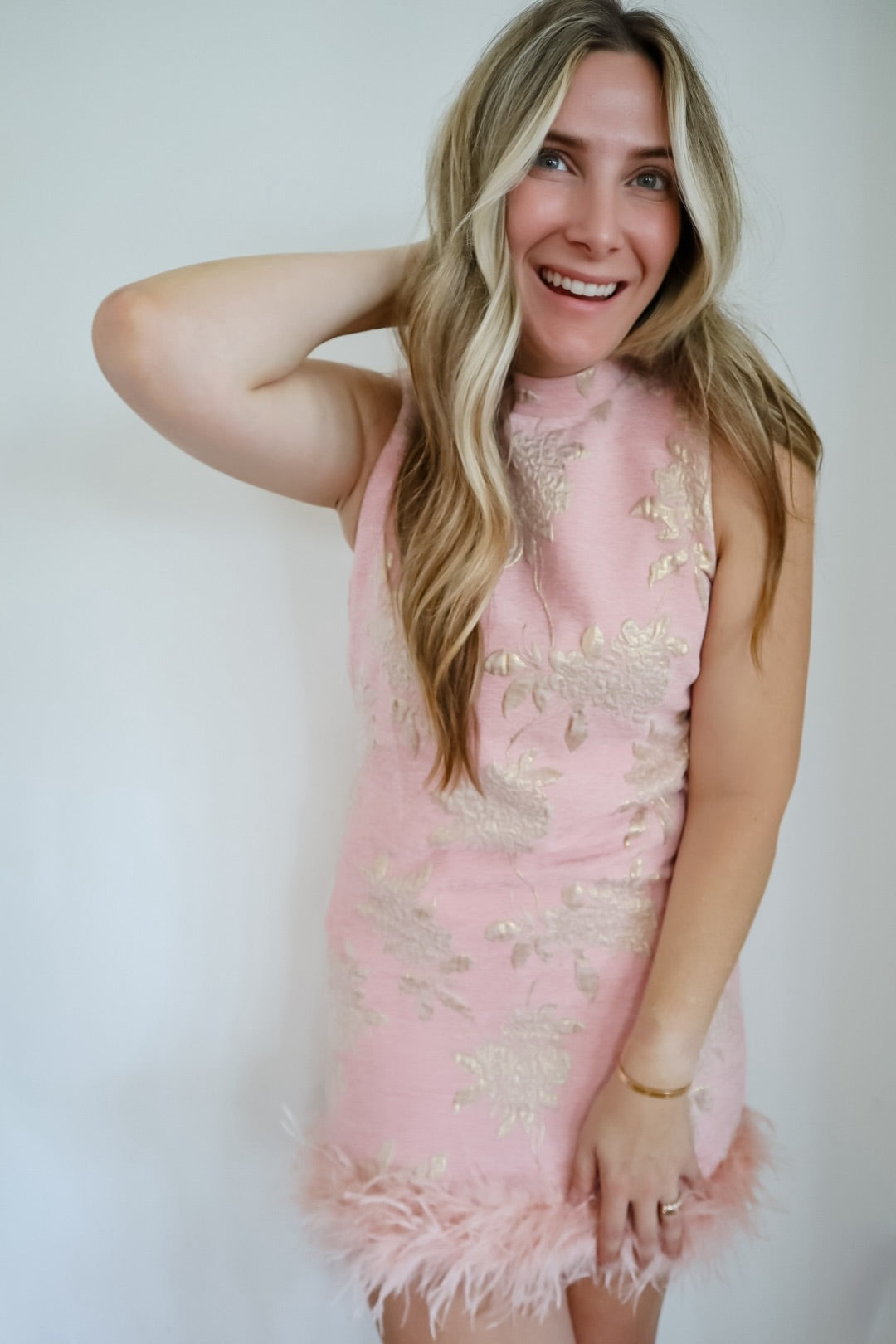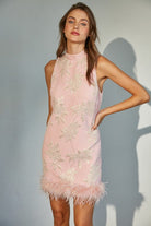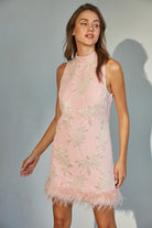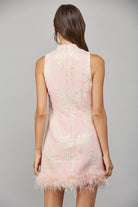 Abigail Feather Trim Jacquard Sleeveless Mini Dress
