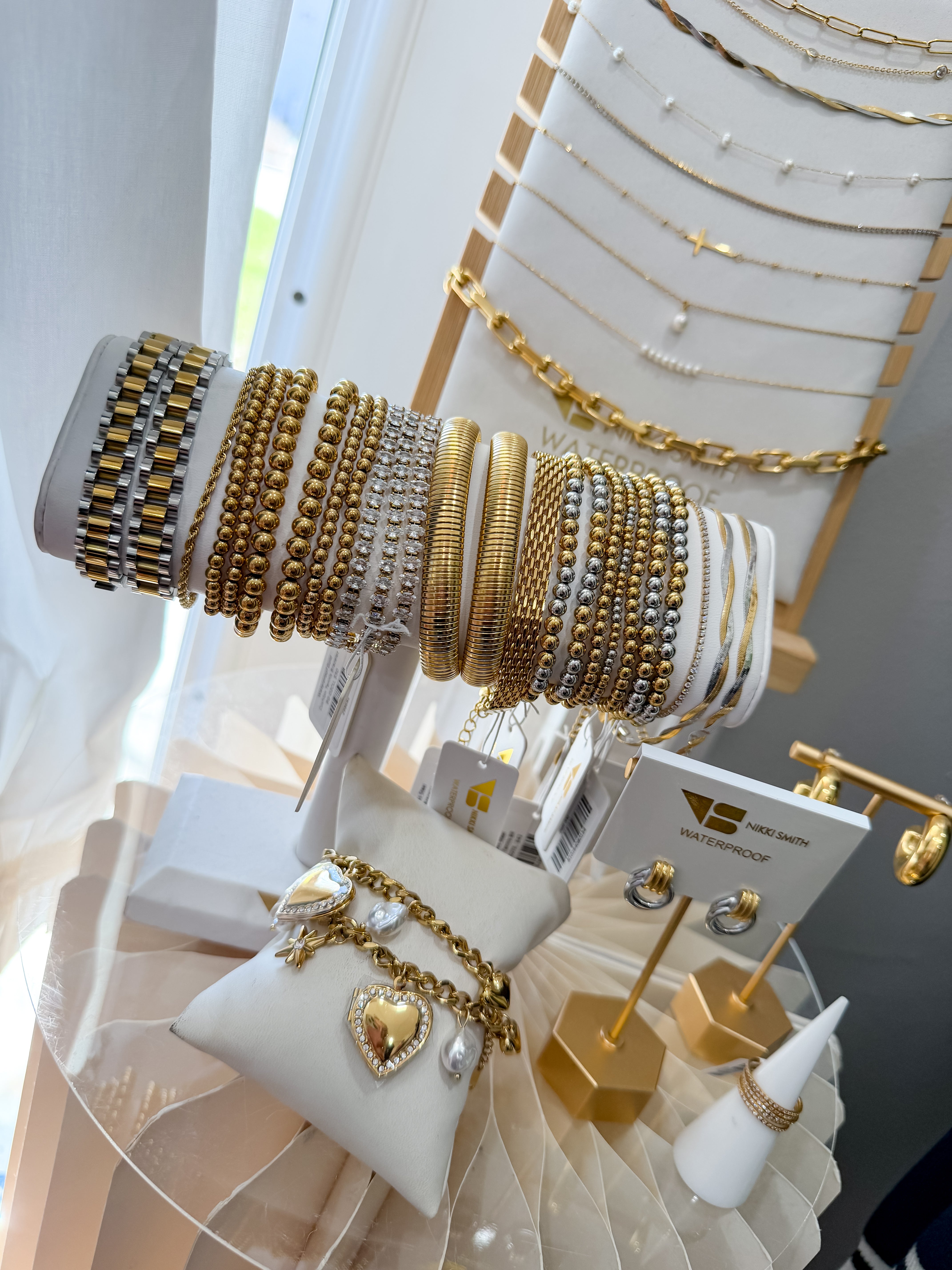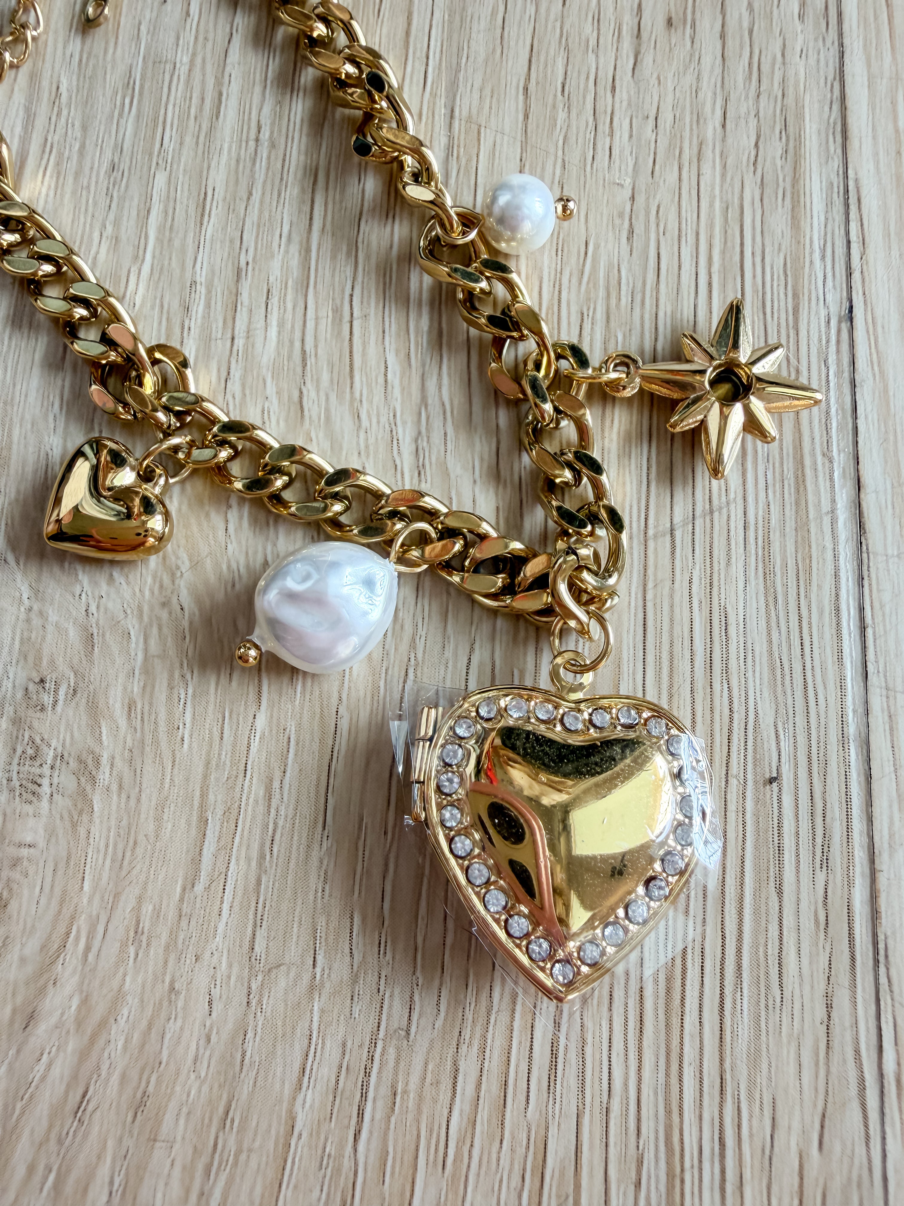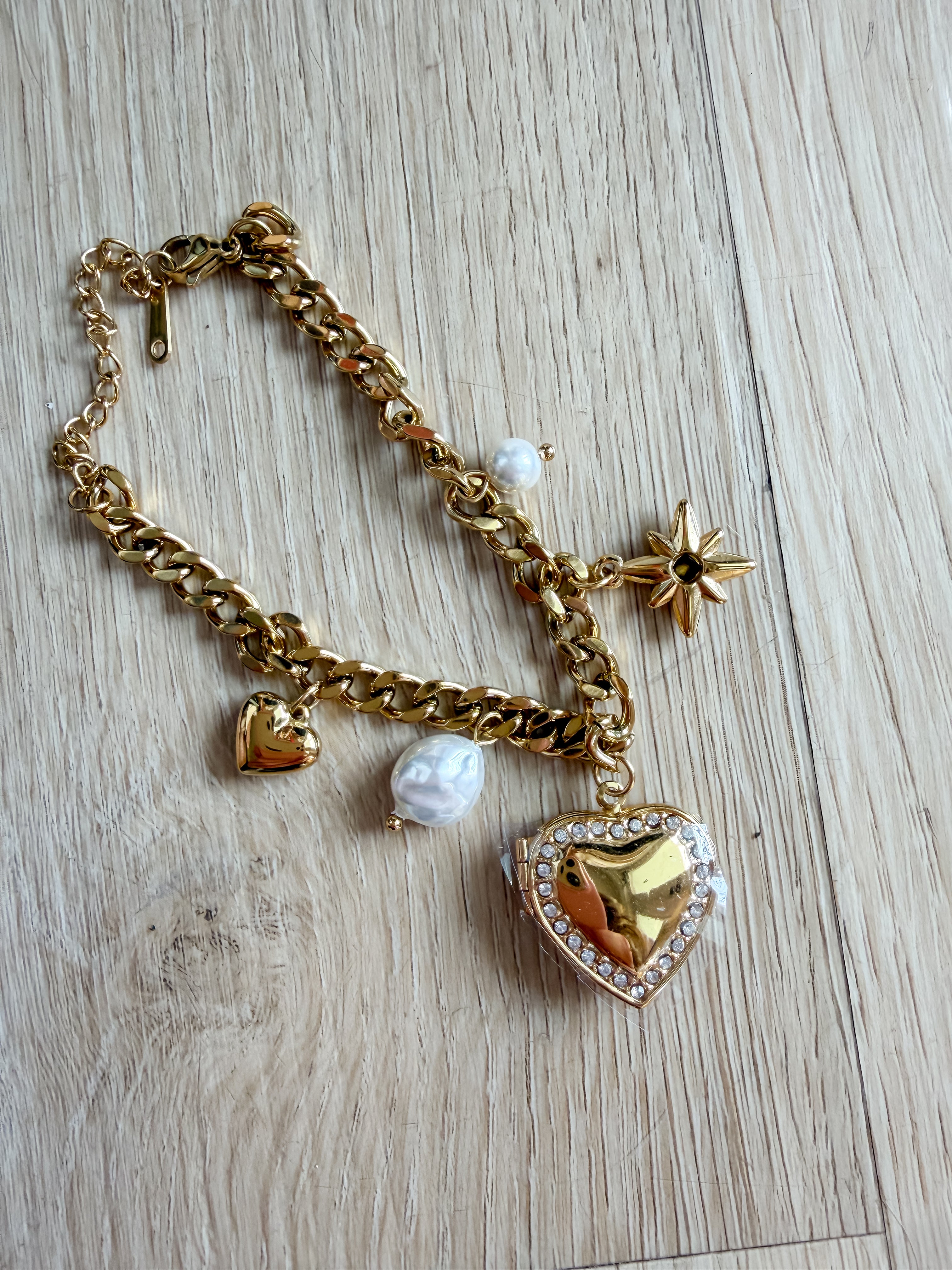 Elevate your everyday elegance with the Angie Heart Gold Charm Bracelet! This exquisite piece features enchanting charms—a crystal-studded star, a radiant heart locket, and pearl-inspired accents—that shimmer with every movement. Its adjustable fit ensures comfort, while the luxe design adds a feminine touch. Perfect for any occasion, it’s a delightful gift or a personal treasure!