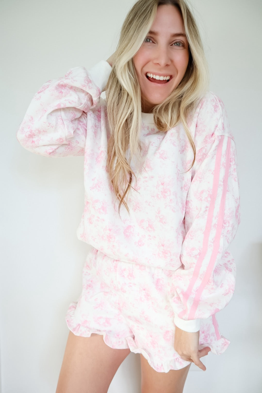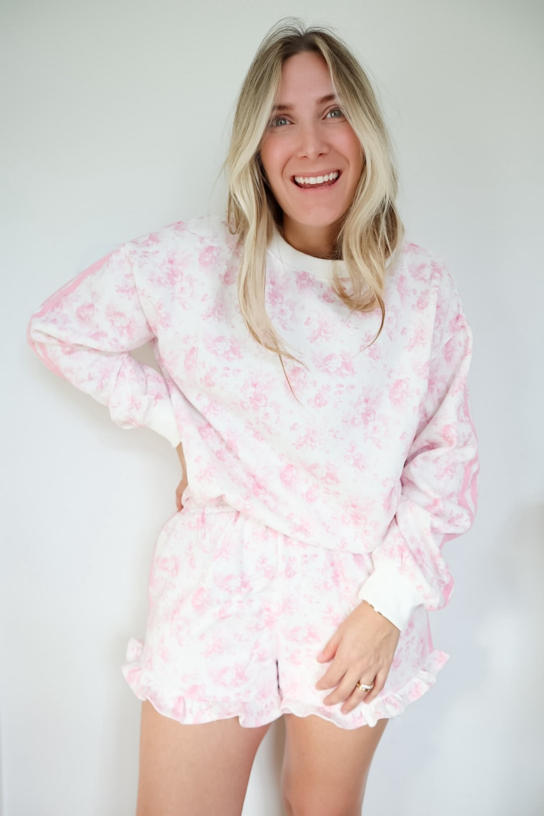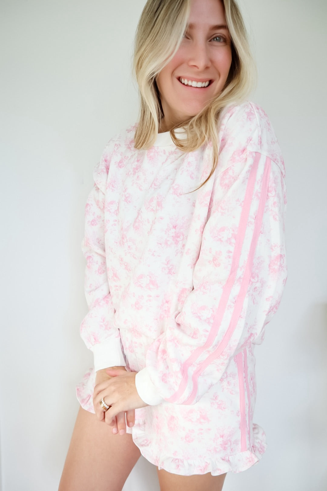 Anna Grace Pink Floral with Stripe Sweatshirt & Shorts Set