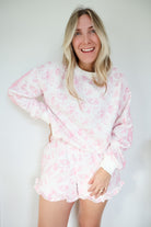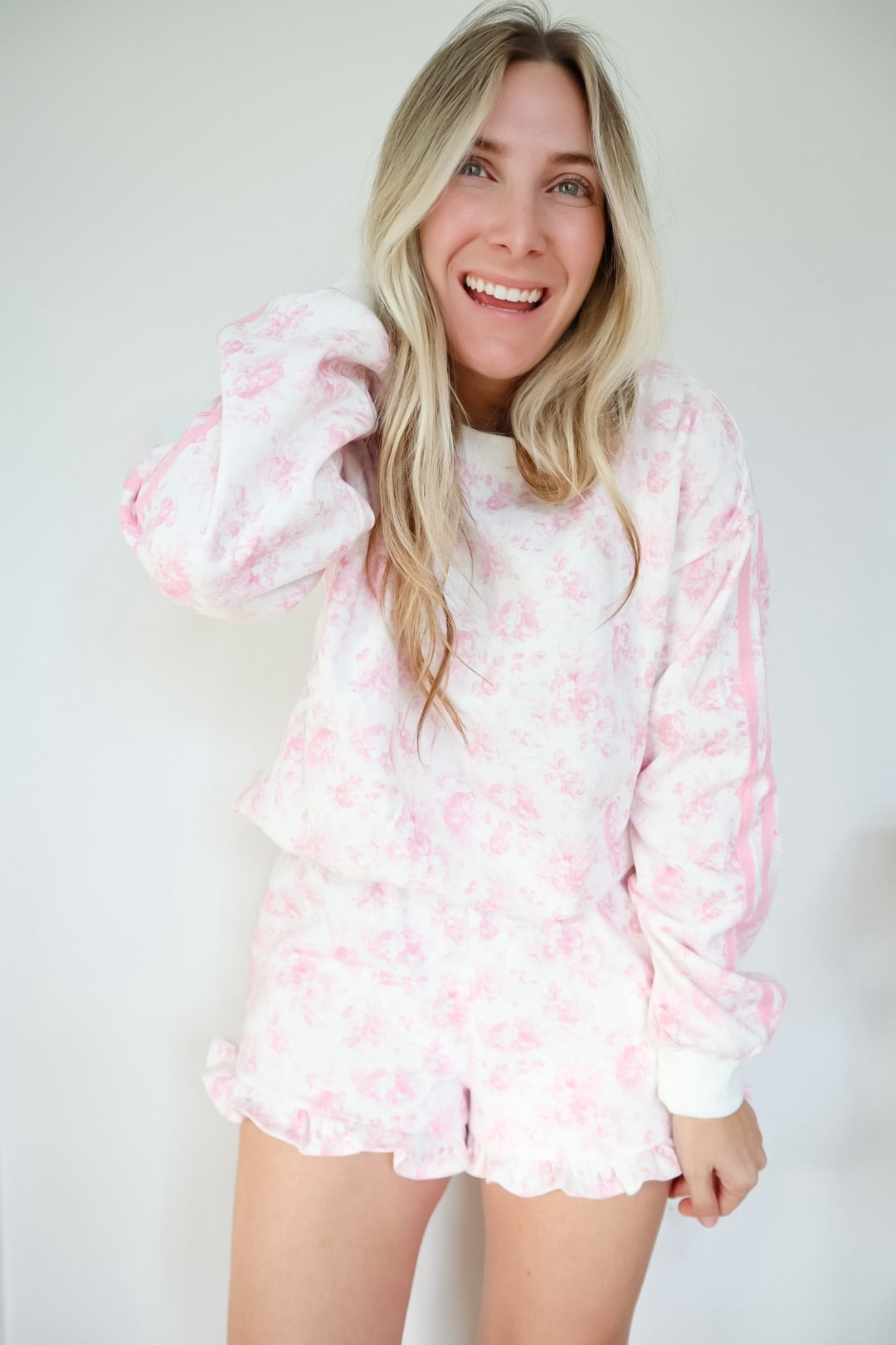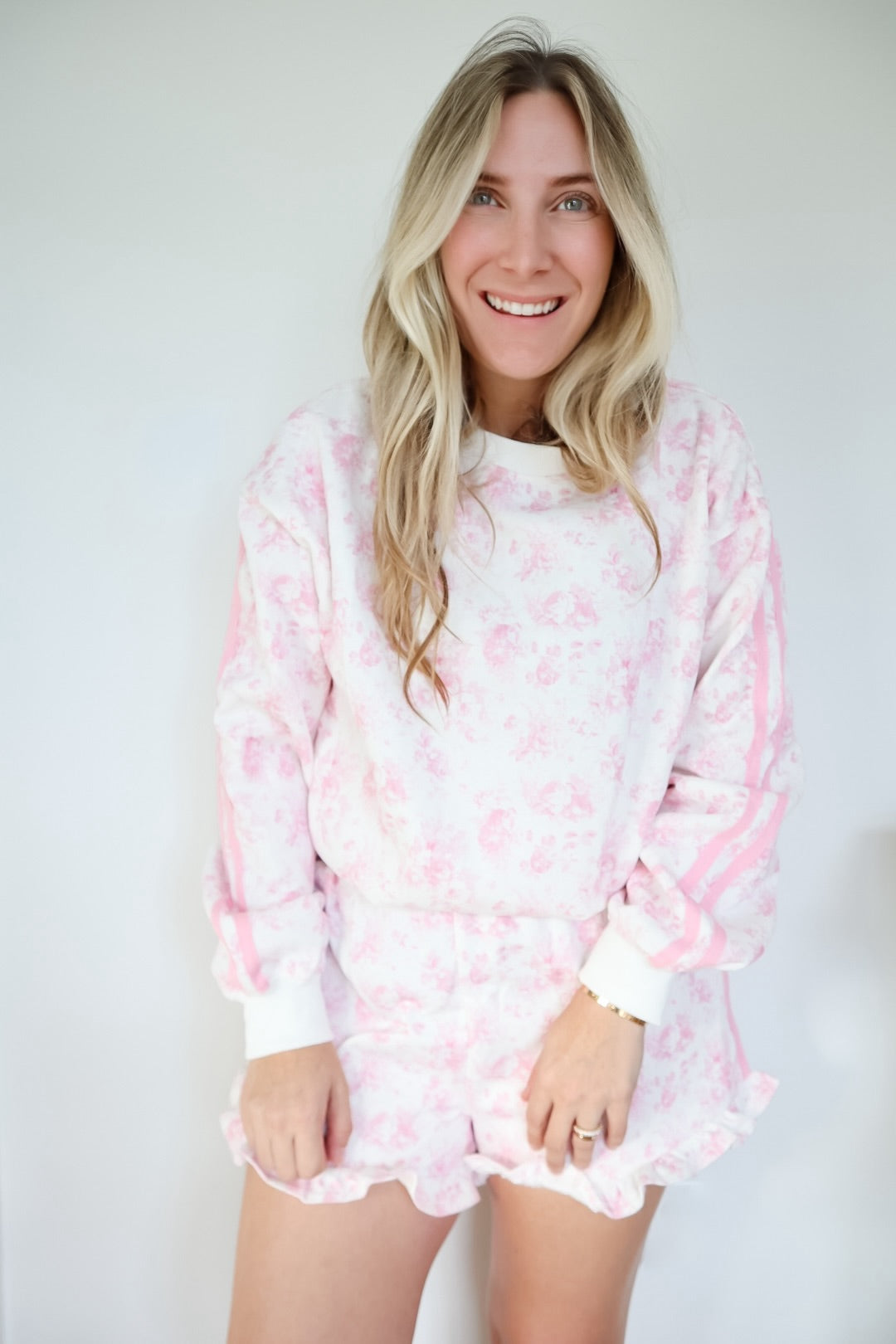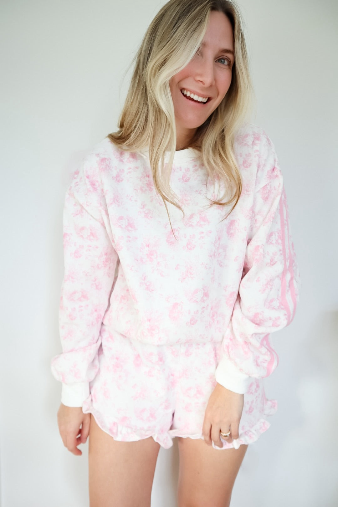 Anna Grace Pink Floral with Stripe Sweatshirt & Shorts Set