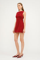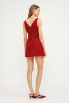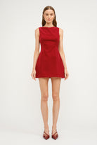 Elevate your evening wardrobe with this sophisticated velvet mini dress, designed for those who appreciate refined elegance. The luxurious velvet fabric drapes beautifully across a sleeveless silhouette, anchored by a classic bateau neckline that frames the shoulders with understated grace. Tailored princess seams create a flattering, sculpted fit, while the unexpected V-back detail adds a modern edge to this timeless piece. Ideal for holiday celebrations and upscale cocktail events, this dress transitions seamlessly from season to season. Maintain its luxurious finish with gentle hand washing in cold water, line drying, and low-heat ironing as needed.