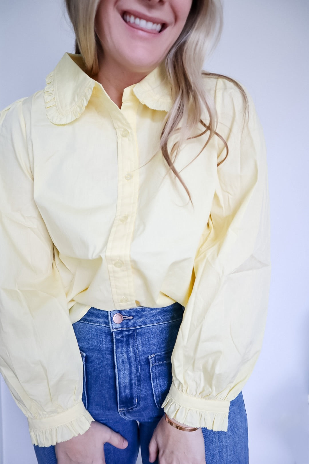 Charley Butter Ruffle Accent Button Down Blouse