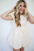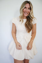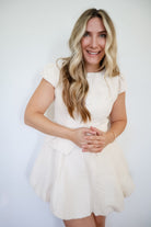 Expertly crafted with quality materials, the Grace Tweed Bubble Hem Mini Dress is a cute and fashionable addition to your wardrobe. With its charming bubble hem design, this dress is sure to make a stylish statement while maintaining a professional and polished look.