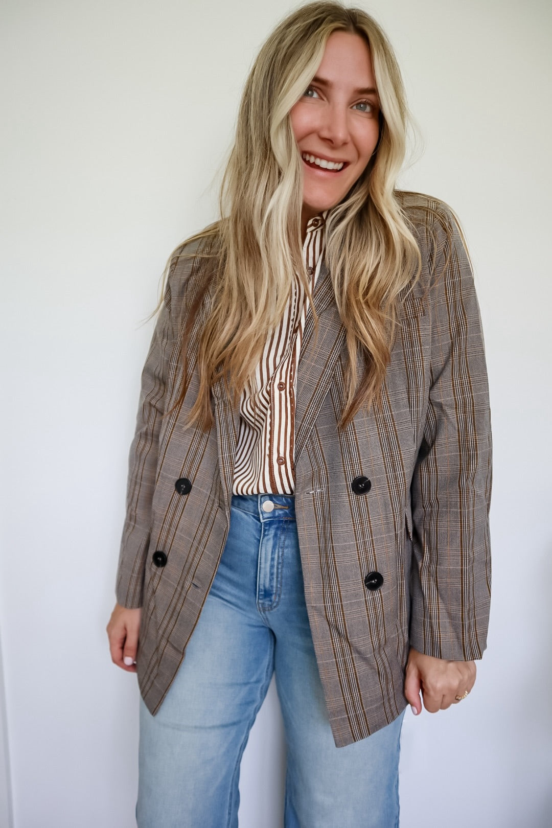 Jackie Plaid Double Button Boyfriend Blazer Jacket