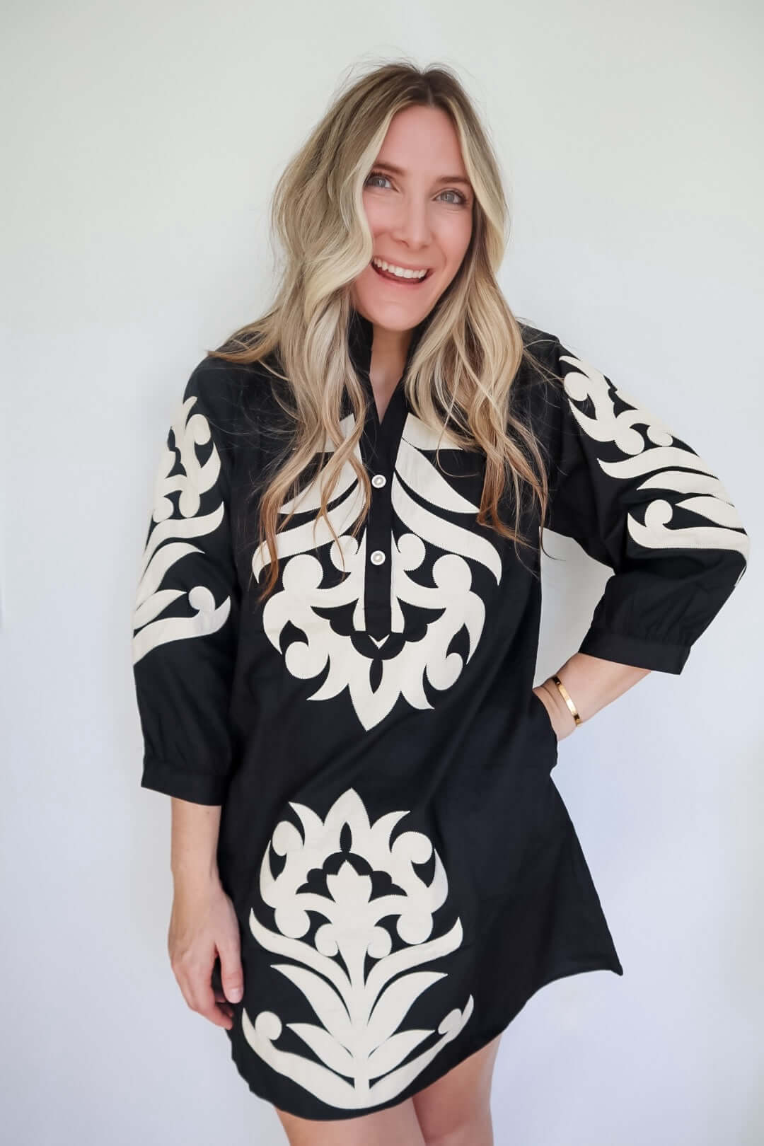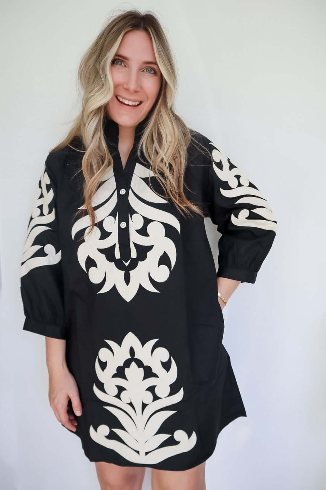 Embrace effortless elegance with the Kathleen Baroque Floral Appliqué Shift Dress. Its stylish design transforms your everyday look into a canvas of beauty, making you feel confident and inspired. Perfect for any occasion, this dress invites compliments and celebrates your unique style!