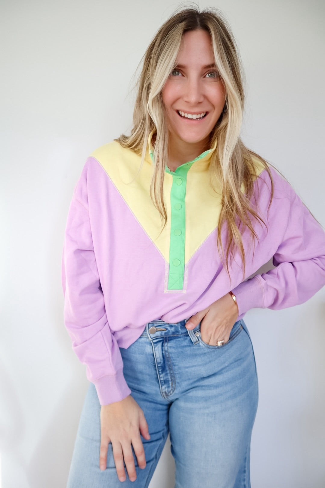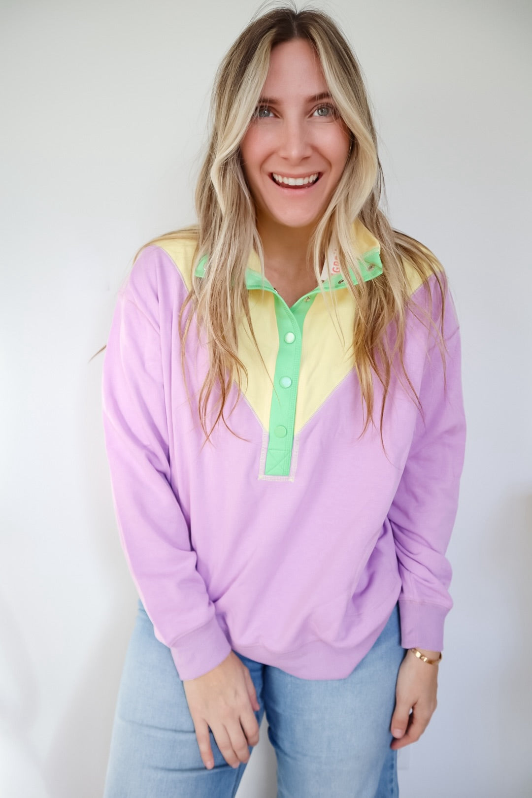 Mardi Gras Color Block Button Up Pullover