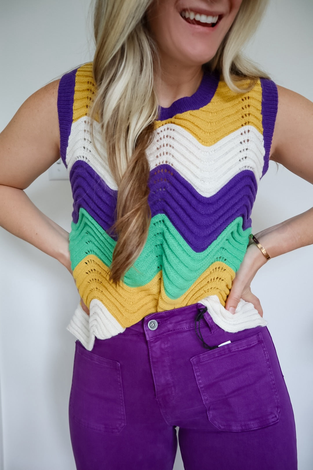 Mardi Gras Stretch Purple Pocket Front Jeans