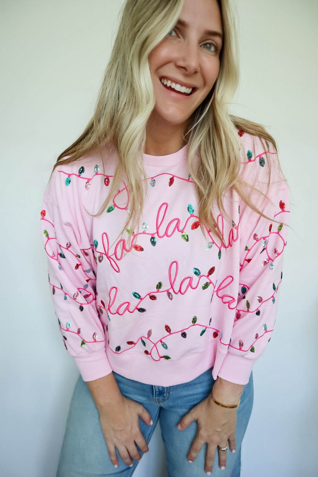 Celebrate the festive season in style with the Mary Square Millie Falala Sweatshirt. Designed with soft, comfortable fabric and adorned with shimmering sequins, this sweatshirt brings a perfect blend of cozy warmth and holiday sparkle. Ideal for holiday gatherings or casual winter days, it adds a touch of festive charm while ensuring all-day comfort. Elevate your seasonal wardrobe with this expertly crafted, eye-catching piece.