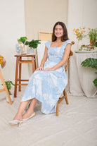 Rosemary Romantic Floral Square Neck Bell Sleeve Midi Dress