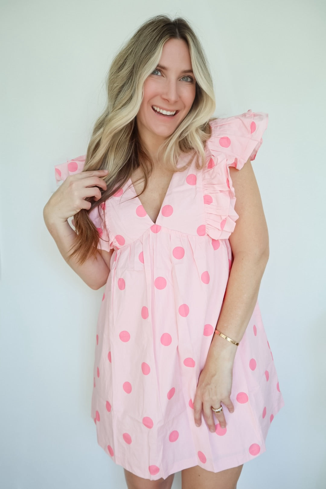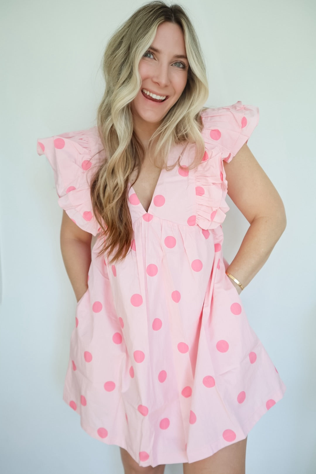 Twirl into joy with the Rosie Polka Dot Ruffle Sleeve Dress—where whimsy meets everyday wear. This charming piece features delightful polka dots and playful ruffle sleeves that add instant personality to your wardrobe. Perfect for anyone who loves a touch of fun with their fashion, Rosie brings that sweet, carefree vibe to casual outings, weekend adventures, or whenever you want to feel a little extra special. Comfortable, cheerful, and undeniably adorable.