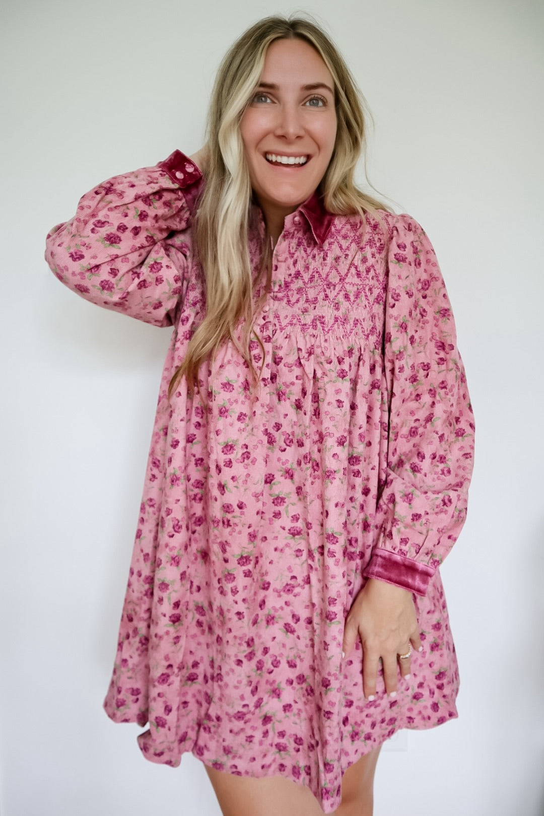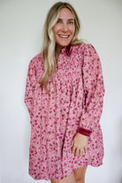 Embrace fall with the Sandra Smocked Floral Print Corduroy Dress, combining comfort and style effortlessly. Its soft corduroy fabric provides warmth and a cozy feel, while the delicate smocked detailing ensures a flattering fit. The subtle floral print adds a touch of charm, making it perfect for both casual days and stylish outings. This dress balances cute and chic, ideal for updating your autumn wardrobe with a versatile piece.