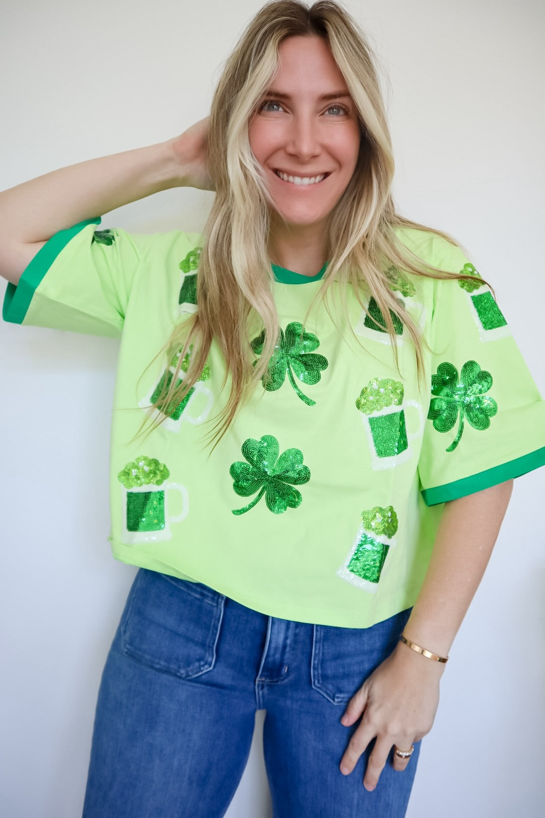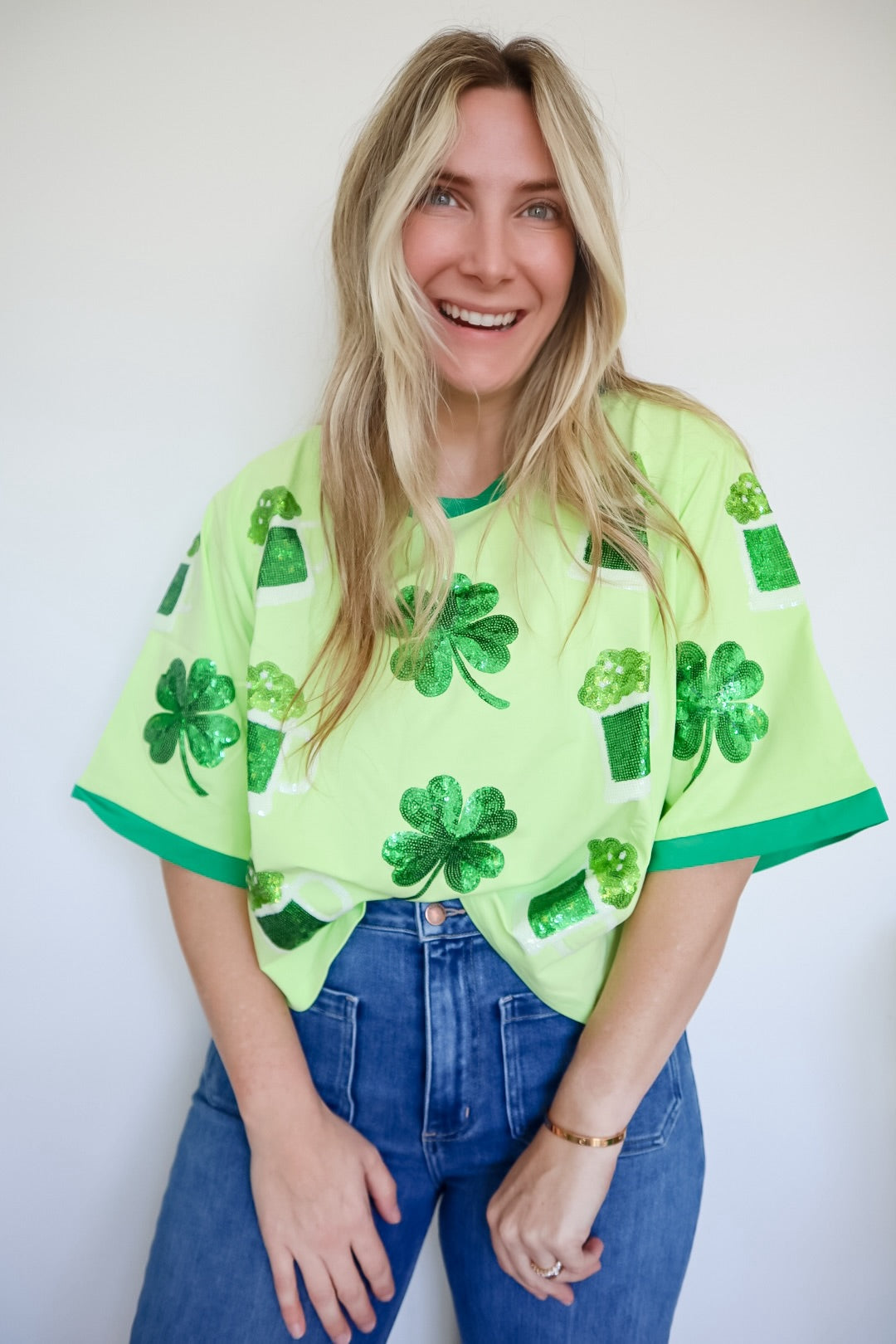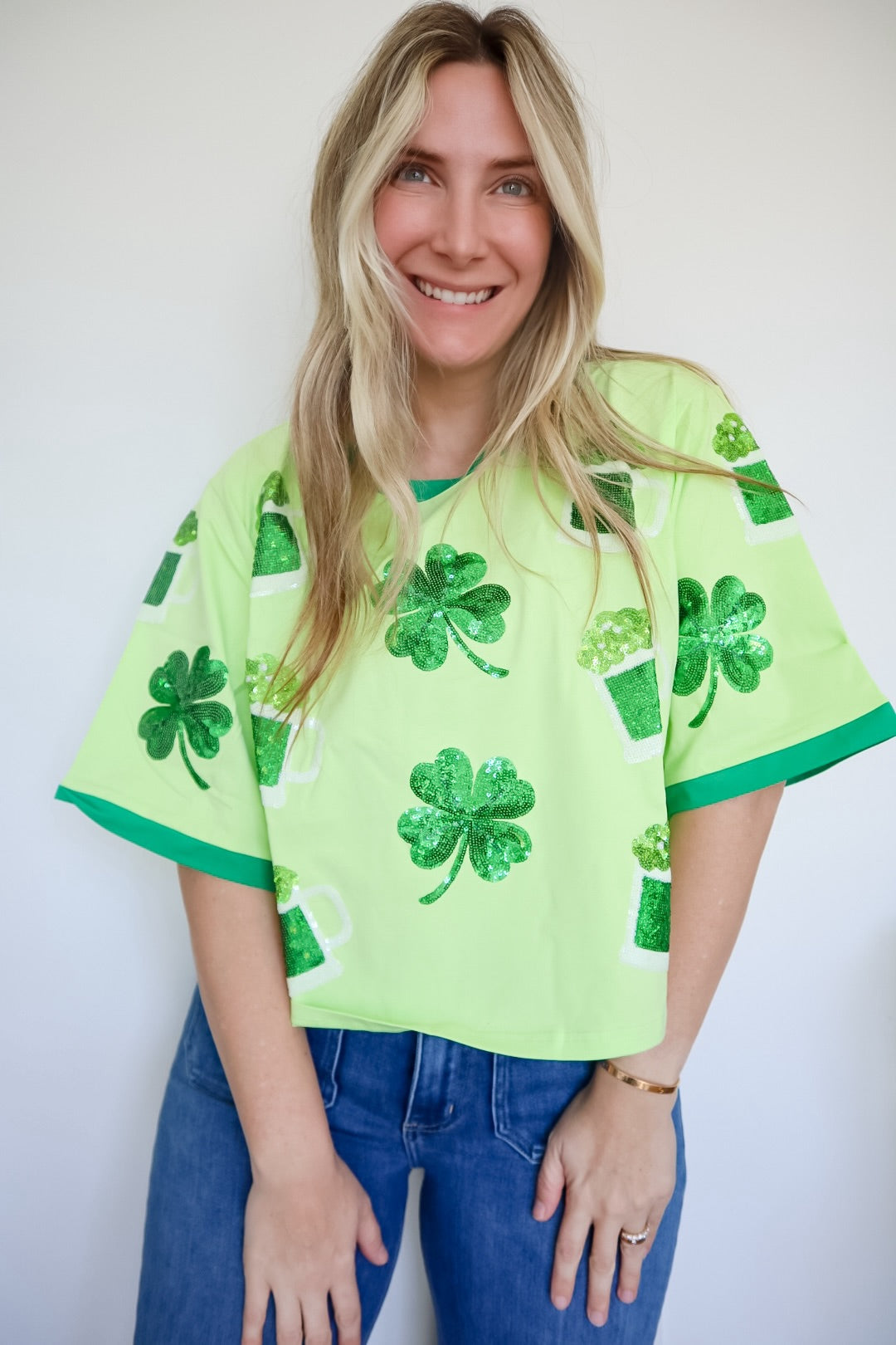 Scattered St. Patty Shamrock Brew Sequin Design Oversized Tee