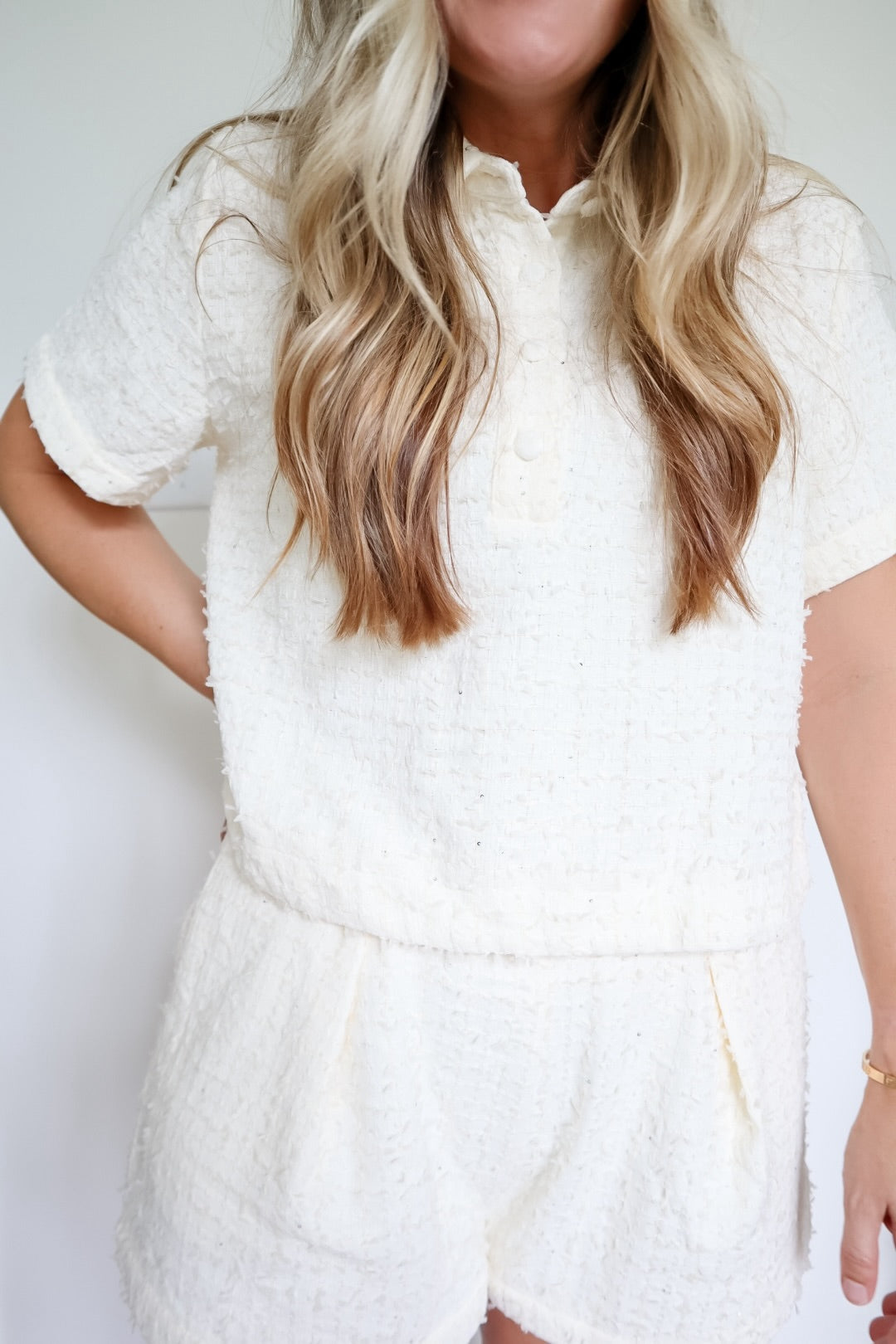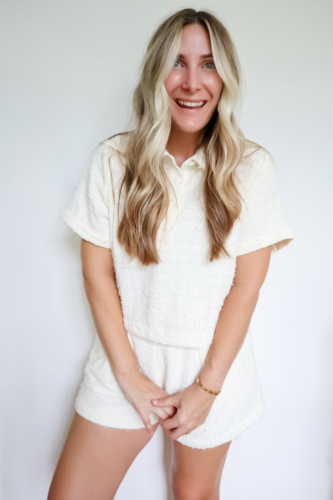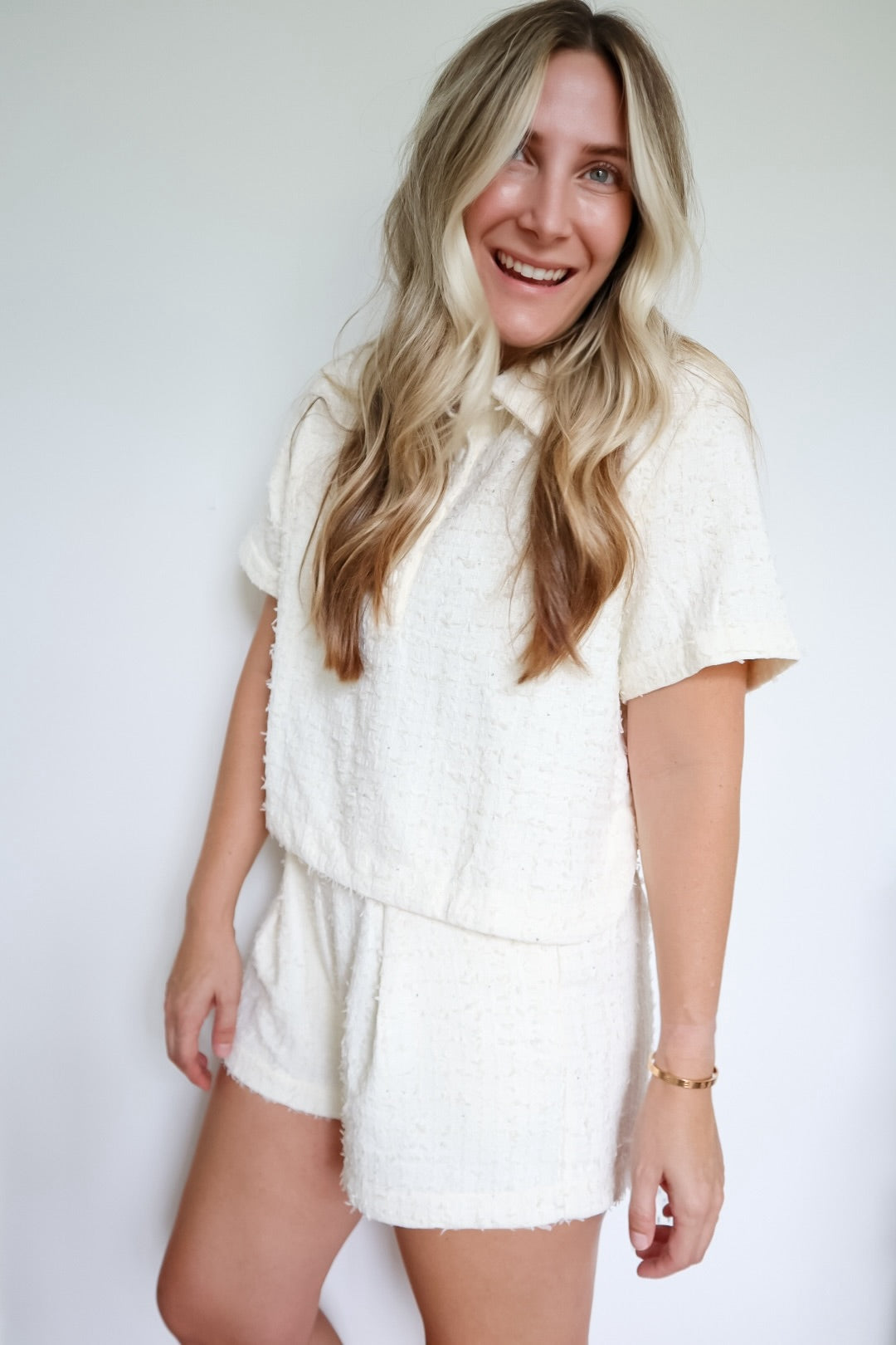Stella Tweed Collar Short Sleeve Top And Shorts Set