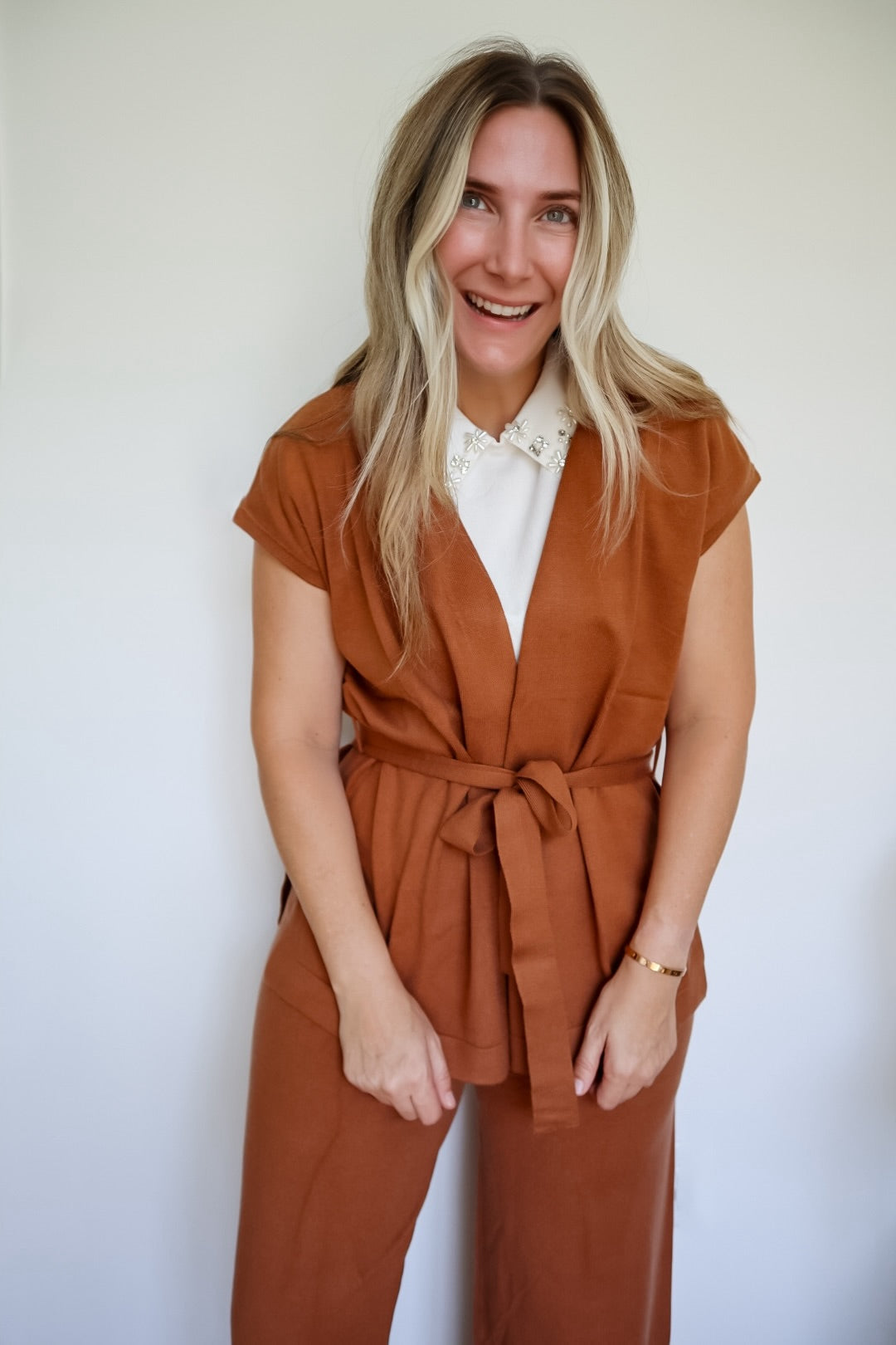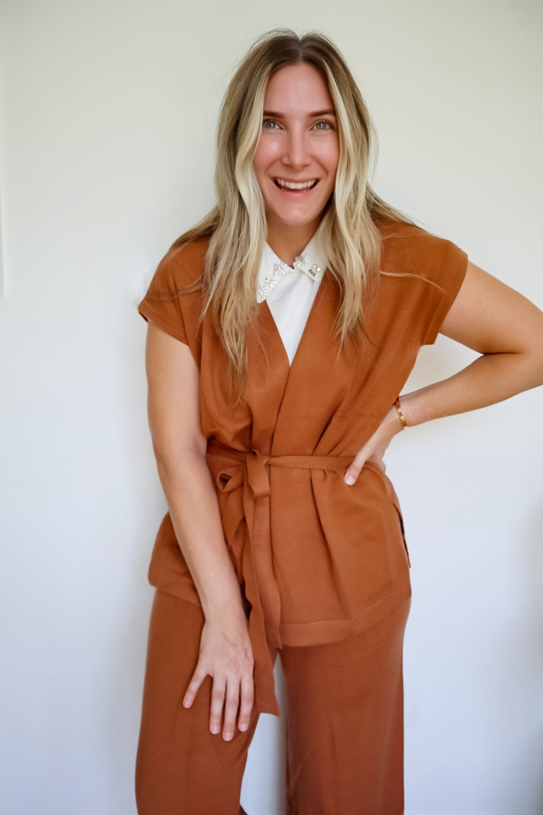 Shelby Sweater Front Tie Blazer Vest & Pant Set