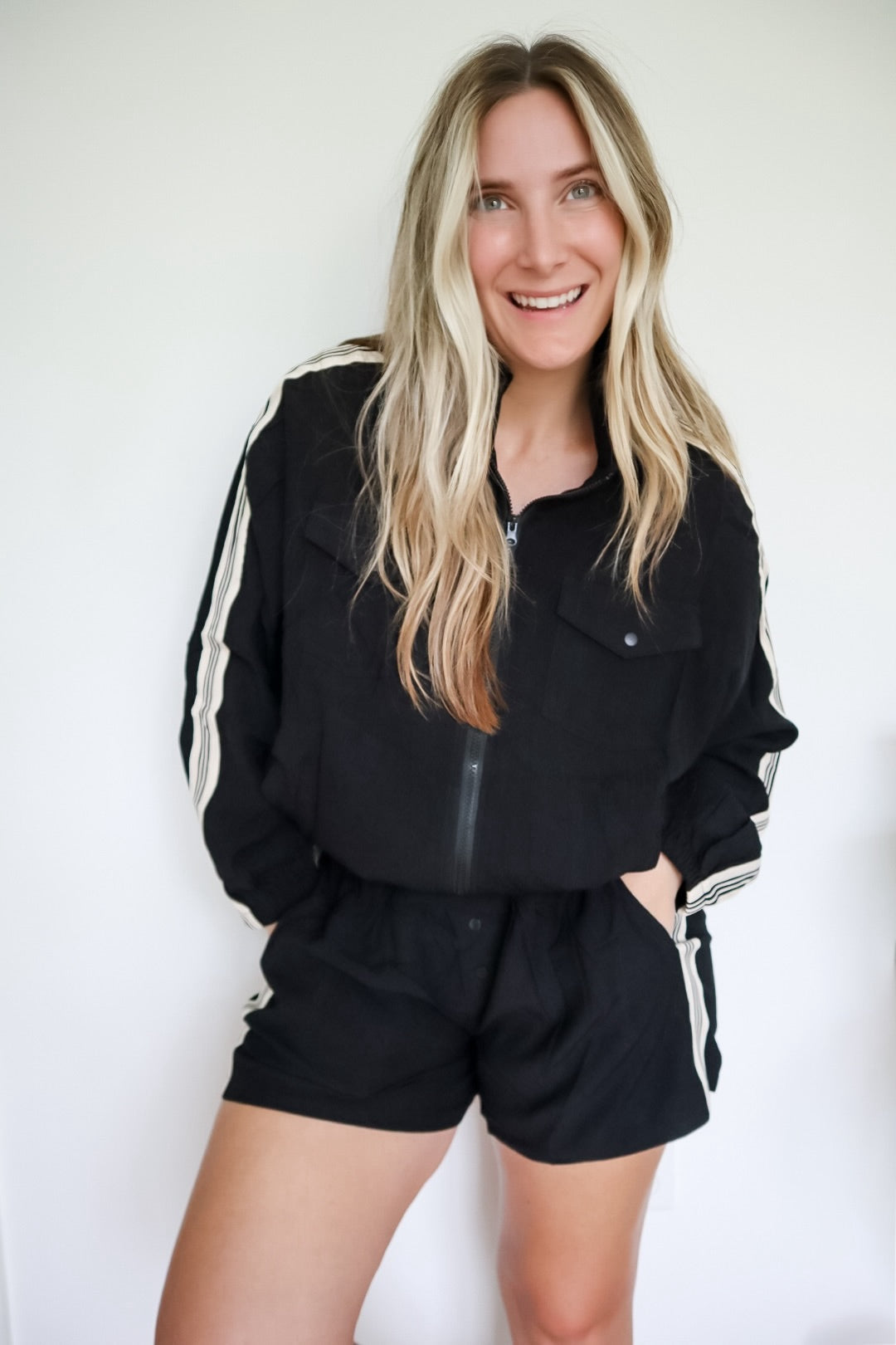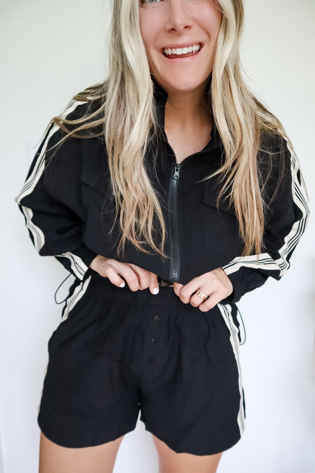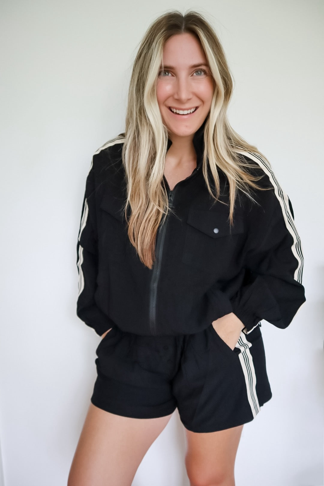 Rebecca Lightweight Stripe Zip Jacket & Shorts Set