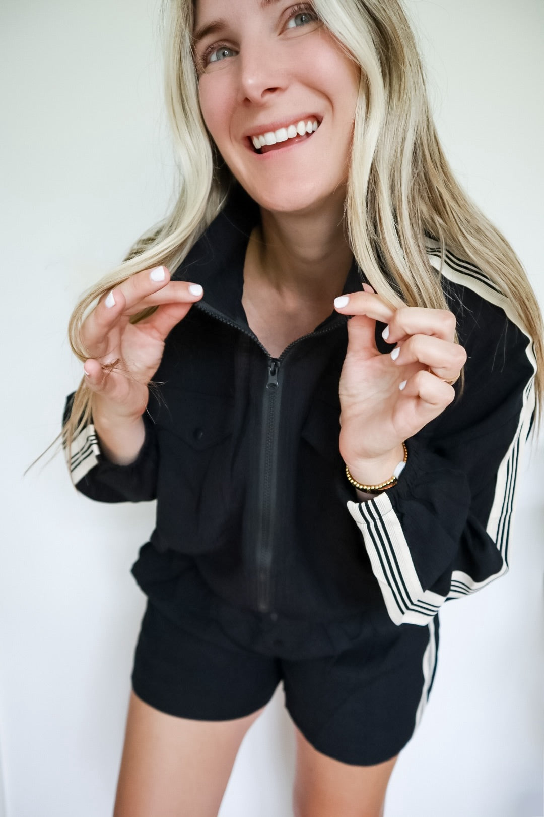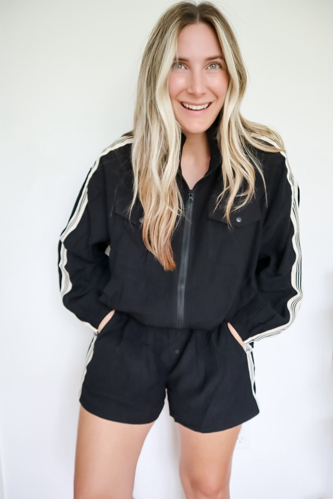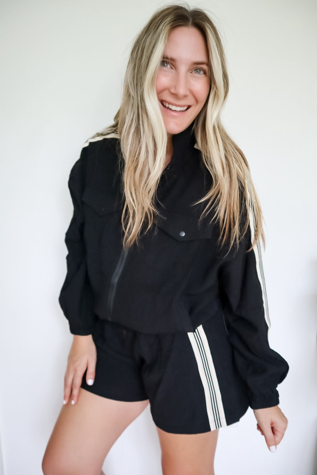Rebecca Lightweight Stripe Zip Jacket & Shorts Set