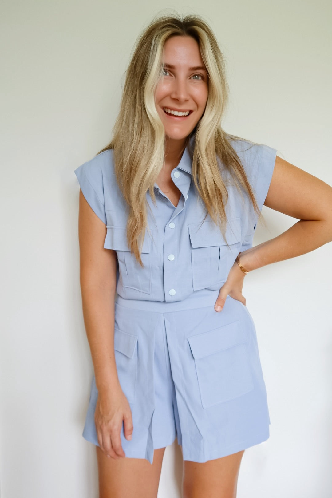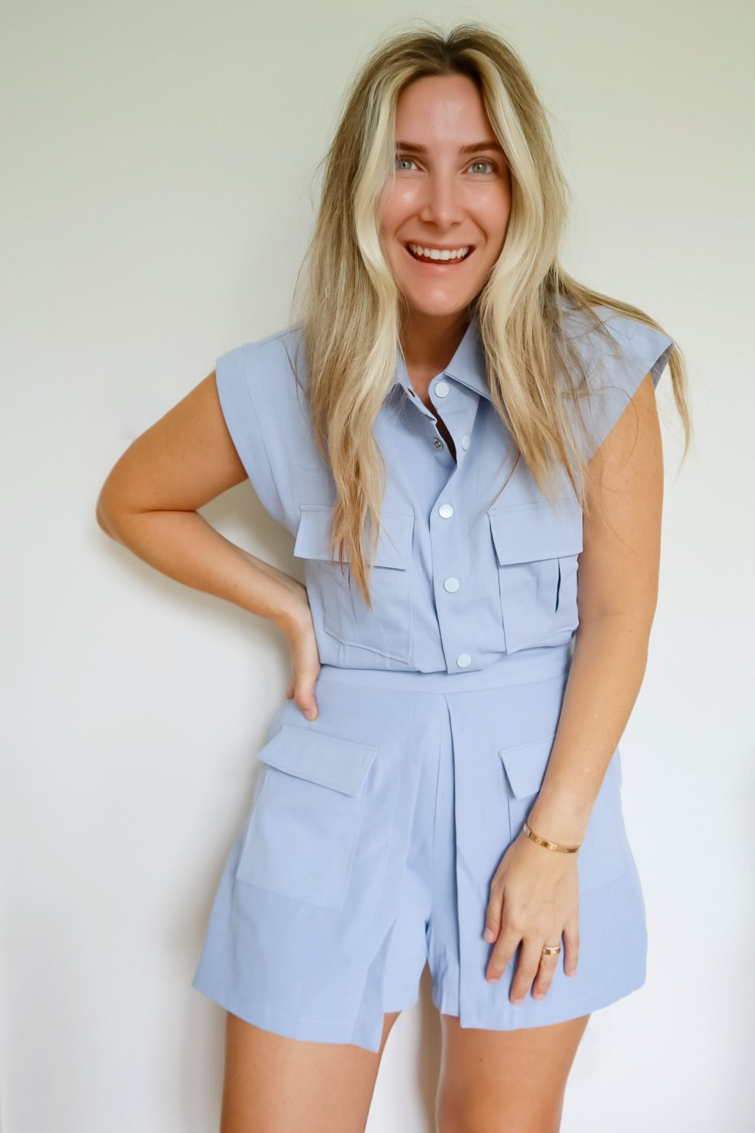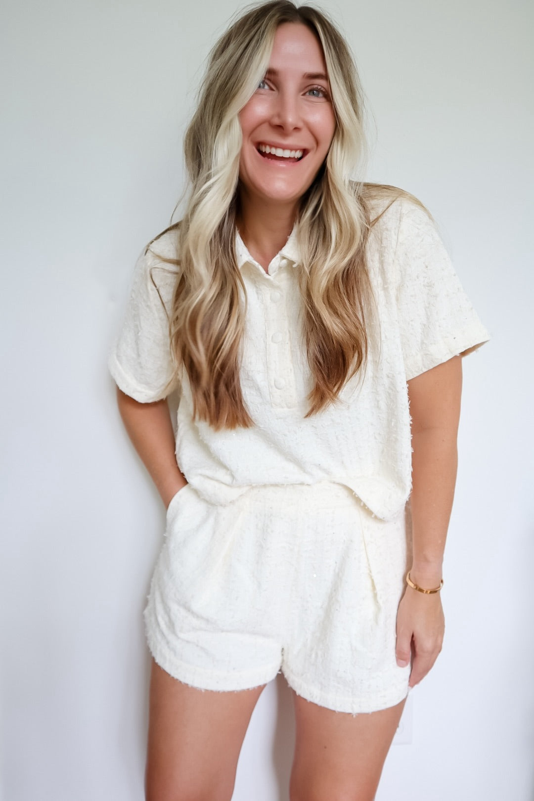 Stella Tweed Collar Short Sleeve Top And Shorts Set
