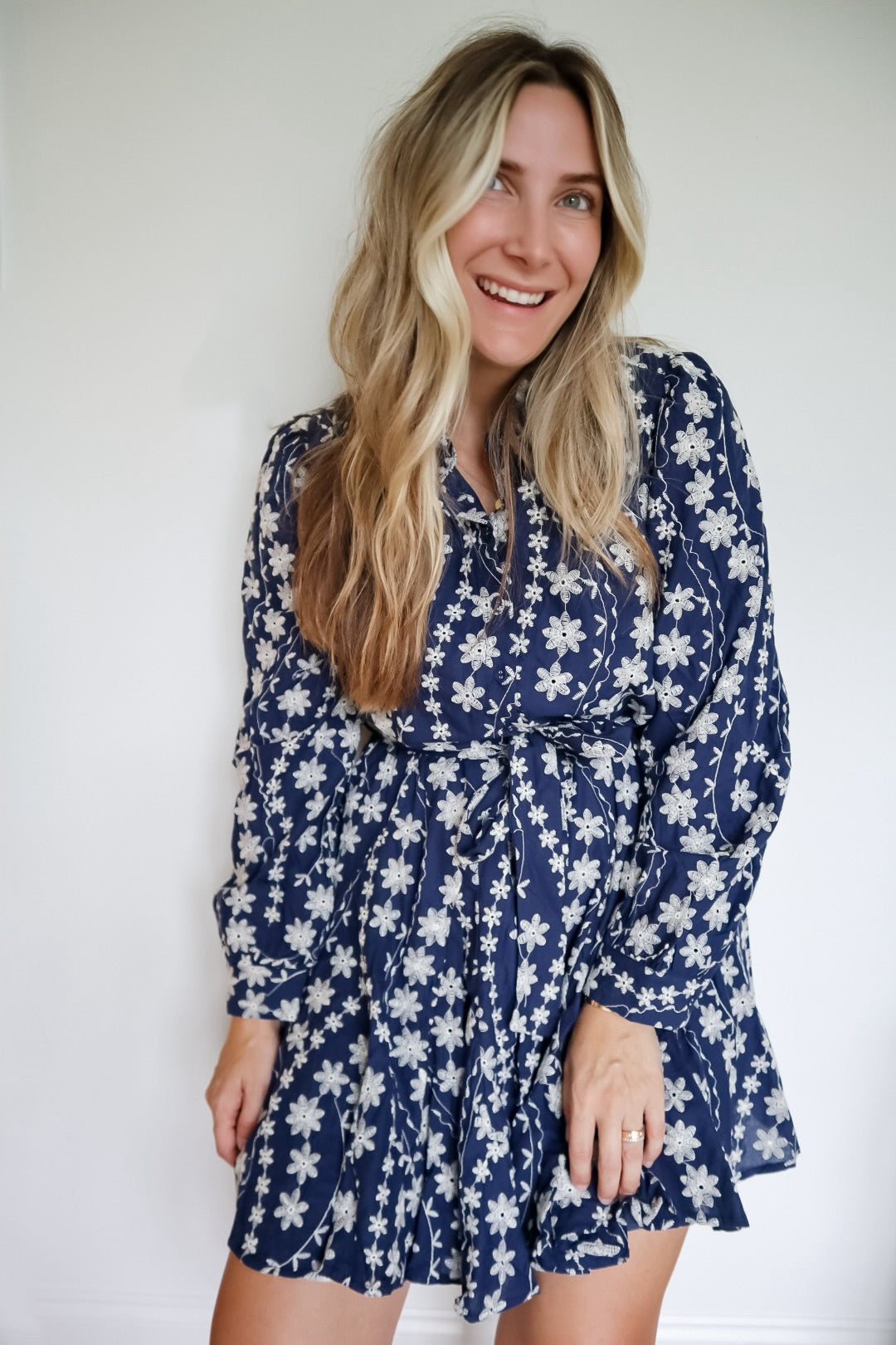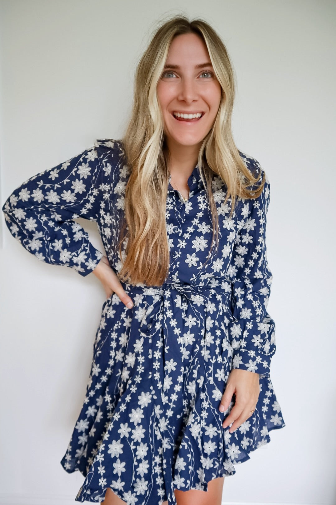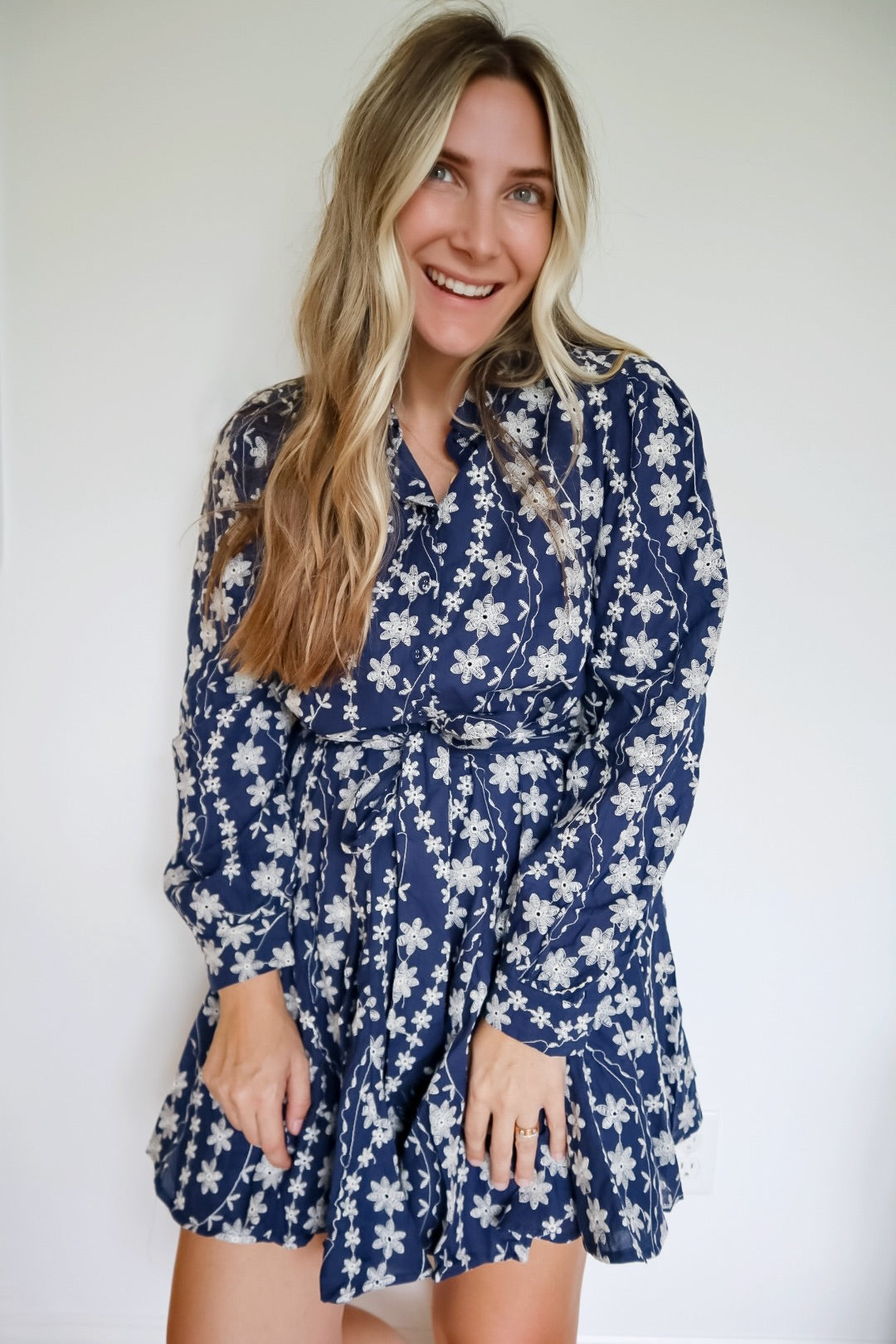 The Jenny Floral Embroidery Button Down Flared Mini Dress features intricate floral embroidery that adds a refined touch to its classic design. It includes a collared neckline and a button-down placket for a polished look. Long puff sleeves with buttoned cuffs enhance its elegant silhouette, while the tying belt sash with belt loops allows for a customizable fit. The flared mini hem offers a flattering shape, complemented by practical pockets. Fully lined for comfort, this dress combines style and functionality with expert craftsmanship.