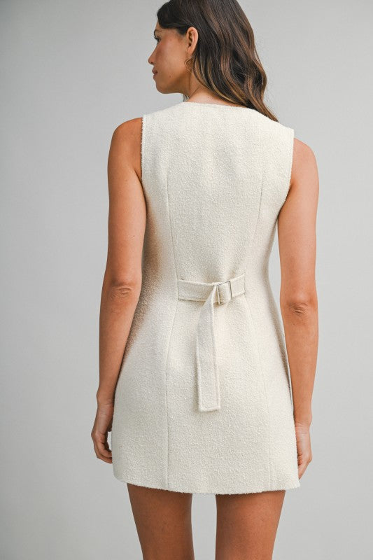 Kimberly Tweed Sleeveless Ruffle Pocket Mini Dress