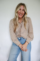 Melanie Stripe Scallop Trim Detail Puff Sleeve Blouse