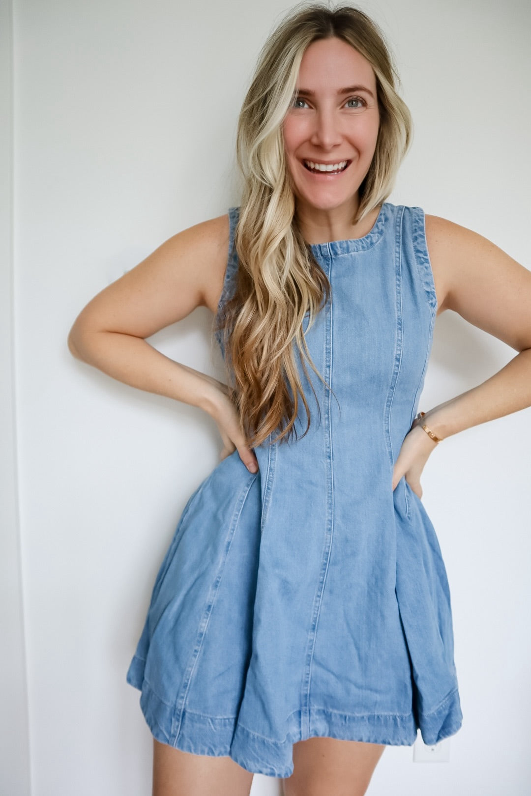 Ryan Pleated Skirt Sleeveless Denim Dress