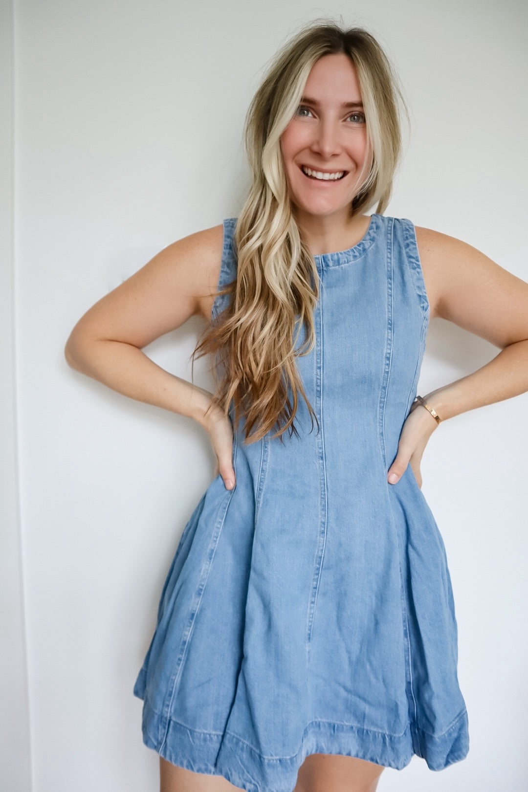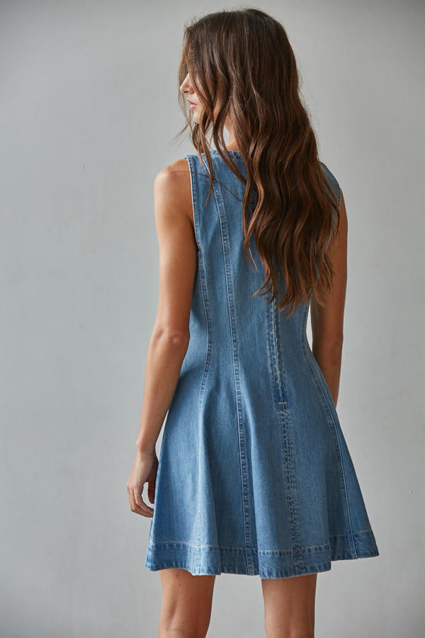 Elevate your everyday style with the Ryan Pleated Skirt Sleeveless Denim Dress. Crafted with quality materials, this dress effortlessly combines comfort and elegance. Feel confident and chic whether you're out for brunch or a casual afternoon stroll. Embrace the timeless appeal that makes every day special!