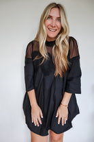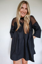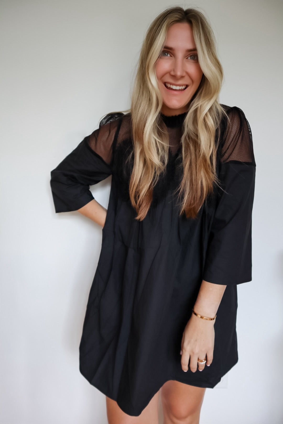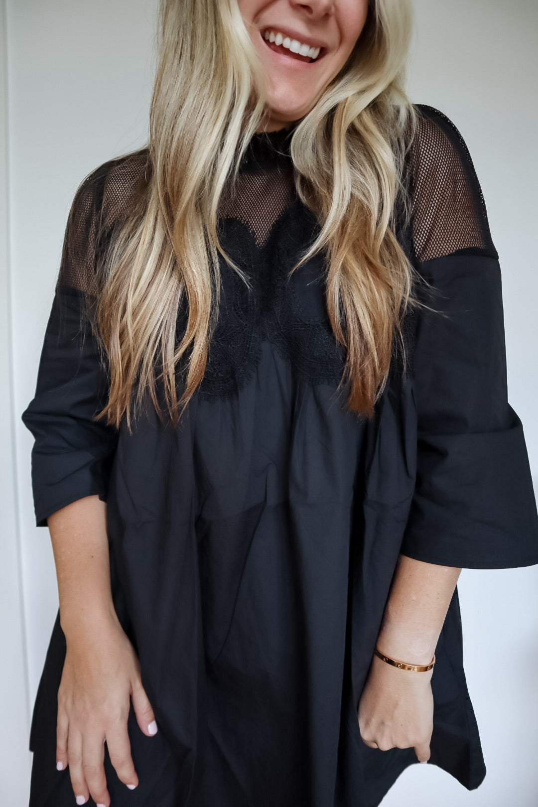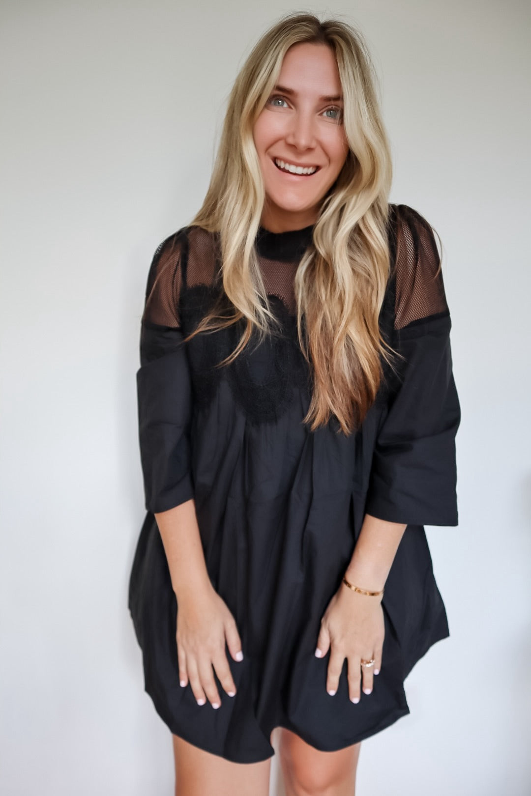 Sara Beth Black Crochet Lace Trim Accent Babydoll Dress