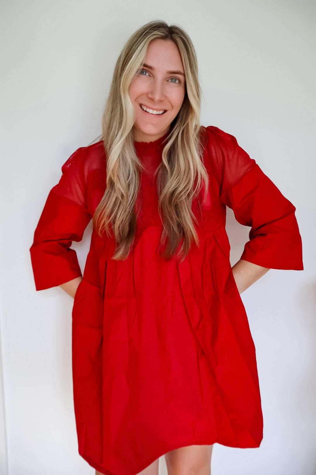 Sara Beth Burgundy Crochet Lace Trim Accent Babydoll Dress