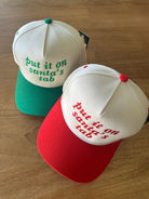 Get in the holiday spirit with our Put It On Santa's Tab Baseball Cap. This festive and stylish cap is the perfect accessory for any Christmas event. Stay on trend and show off your holiday cheer with this must-have accessory.