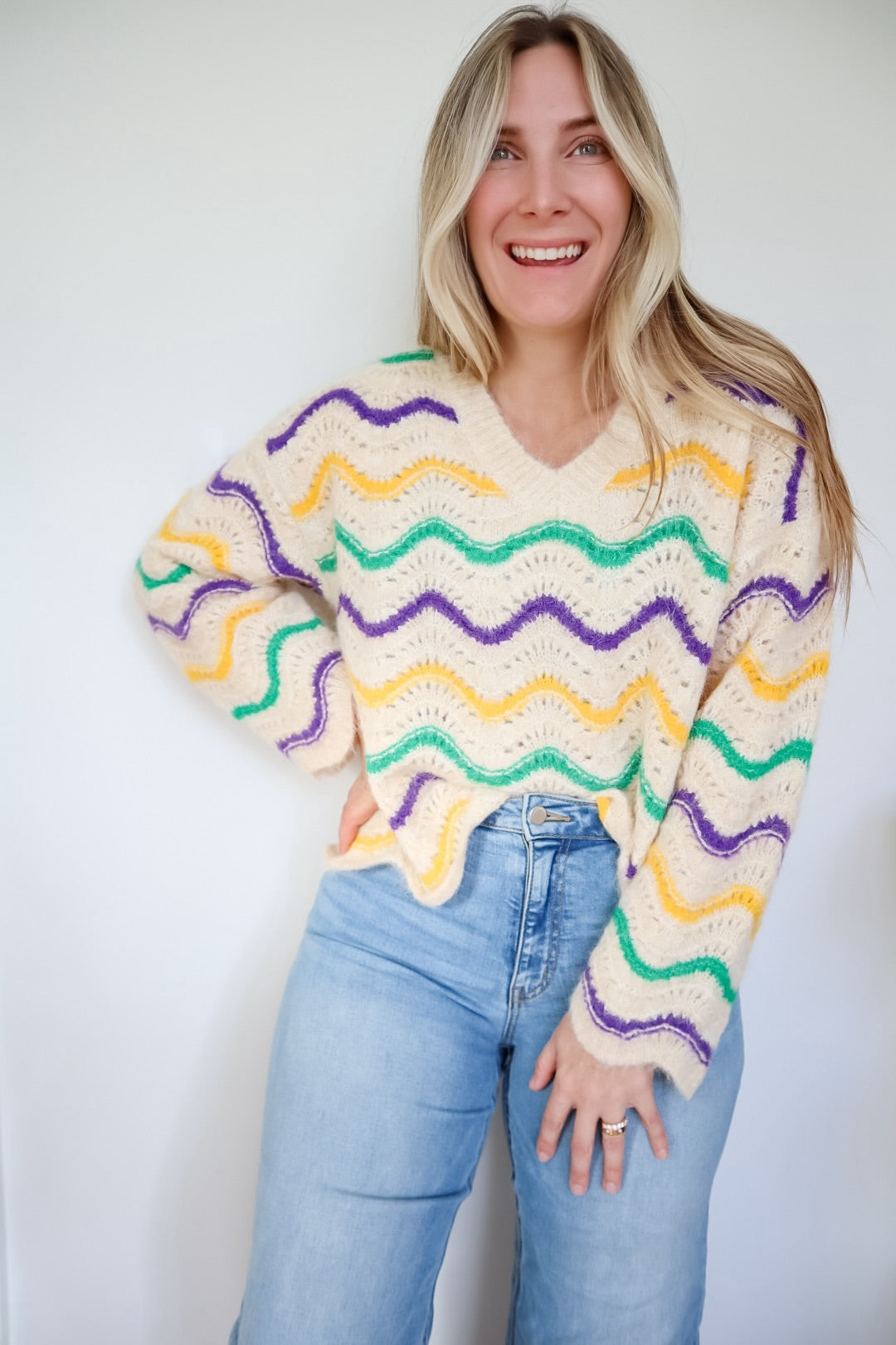 Mardi Gras Color Block Drop Shoulder Sweater Top