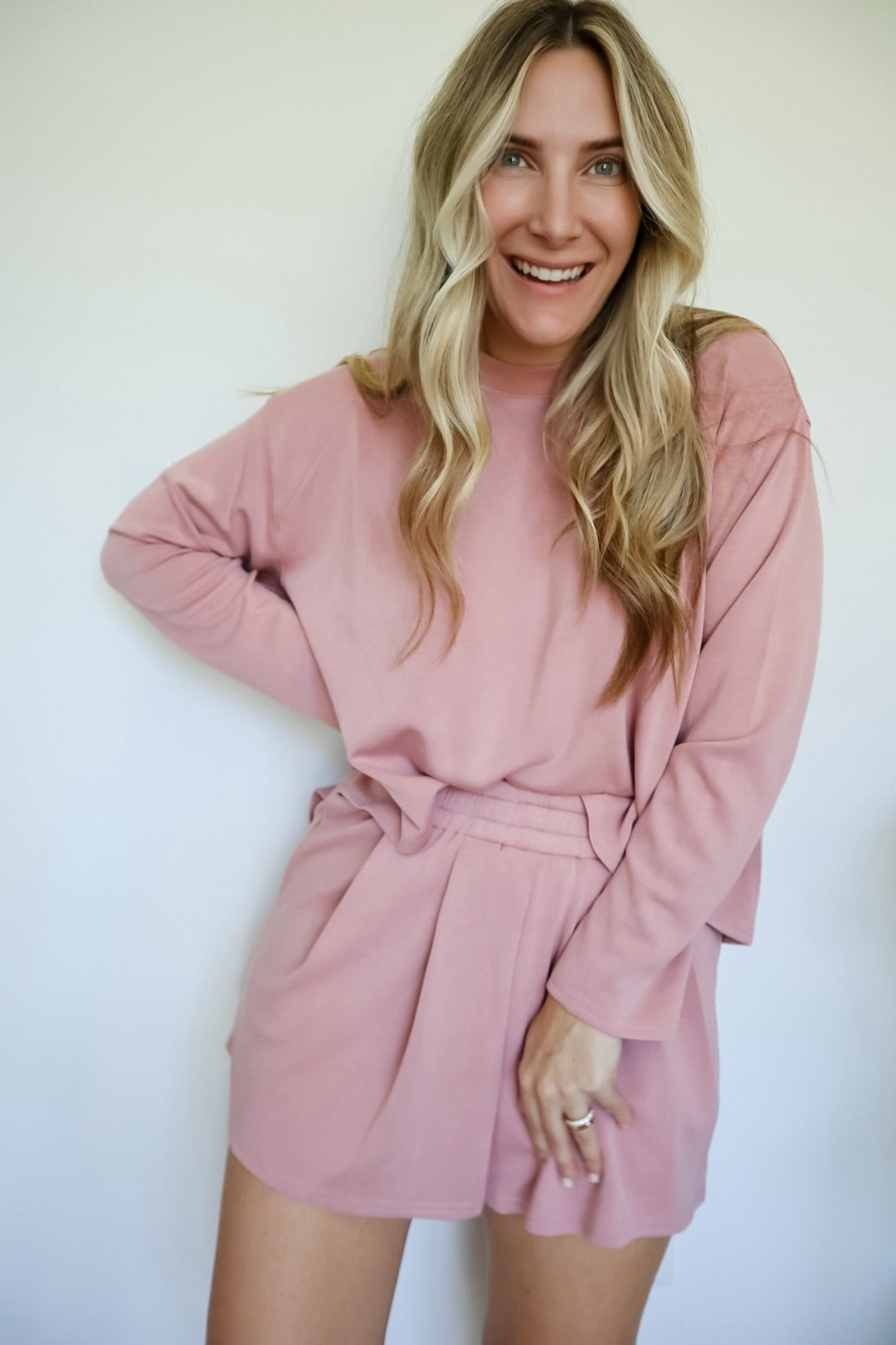 Elizabeth Ultra Soft Pleated Long Sleeve & Shorts Set