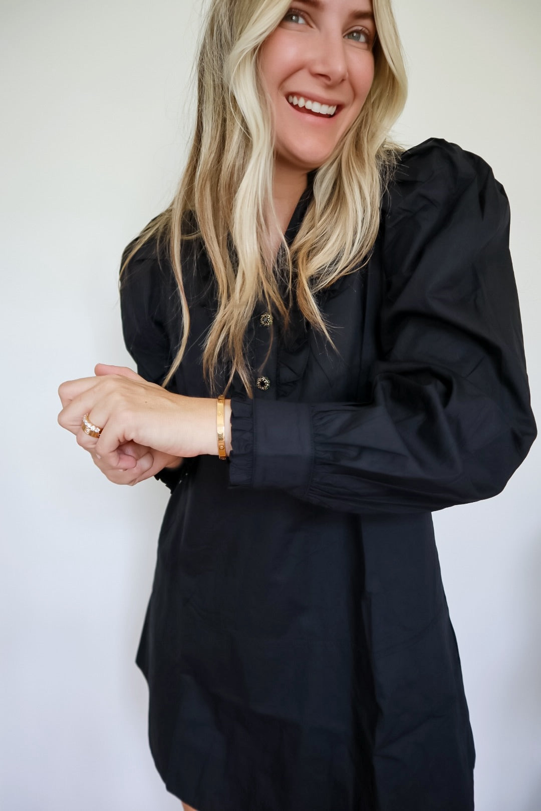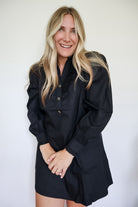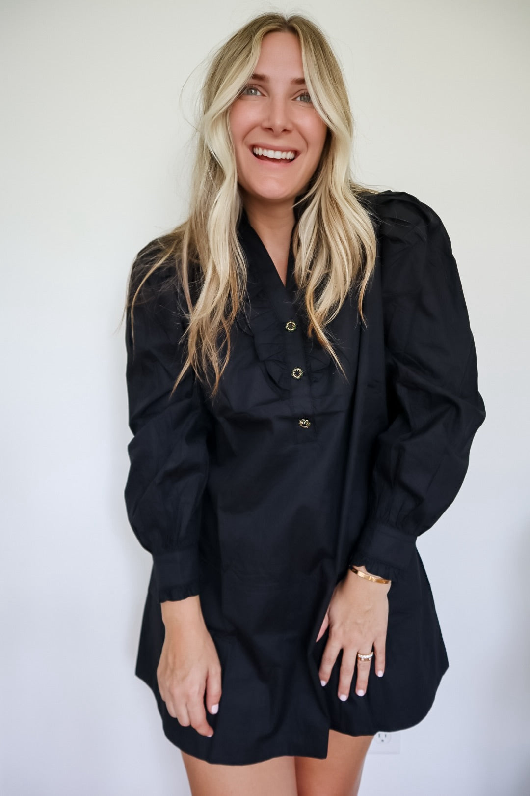 Elevate your wardrobe with the Ainsley Ruffled Detail Mini Dress, featuring refined button-down styling and delicate ruffled accents that enhance its feminine silhouette. The puffed sleeves add a touch of volume and sophistication, while the convenient side pockets offer practical elegance. Perfect for both casual outings and dressier occasions, this mini dress combines style and functionality with expert craftsmanship.