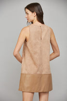 Amber Contrast Faux Leather Hem Sleeveless Suede Shift Dress