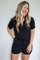 The Amelia Airflow Button Down Romper expertly blends contemporary style with breathable comfort. Featuring short sleeves and a classic collared button-down front, it offers a polished yet relaxed look. Practical front pockets and an adjustable elastic waist tie enhance functionality and fit. Designed to keep you cool on warm days, this romper delivers effortless style without compromising comfort.