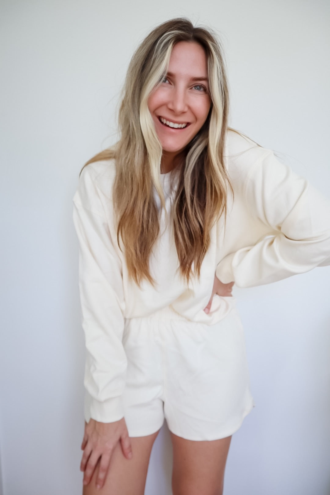 Amelia Super Soft Ivory Pullover & Shorts Set