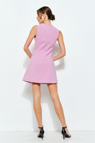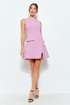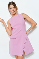 Turn heads in this chic Asymmetrical Mini Dress featuring a sleeveless silhouette and round neckline. The wrap-style front adds modern flair, while gold-tone bow accents bring a playful, feminine touch. A faux flap pocket elevates the look. Ideal for brunch, date nights, or semi-formal events—effortless elegance with a twist.