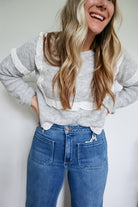 Georgia Ribbed Crew Neck Ruffle Detailed Knit Sweater