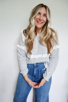 This Georgia Ribbed Crew Neck Knit Sweater combines refined ribbed texture with delicate ruffle detailing for a sophisticated look. Crafted with a woven pullover design, its long sleeves and crew neckline offer both comfort and style, making it an ideal choice for layering or standalone wear in cooler seasons.