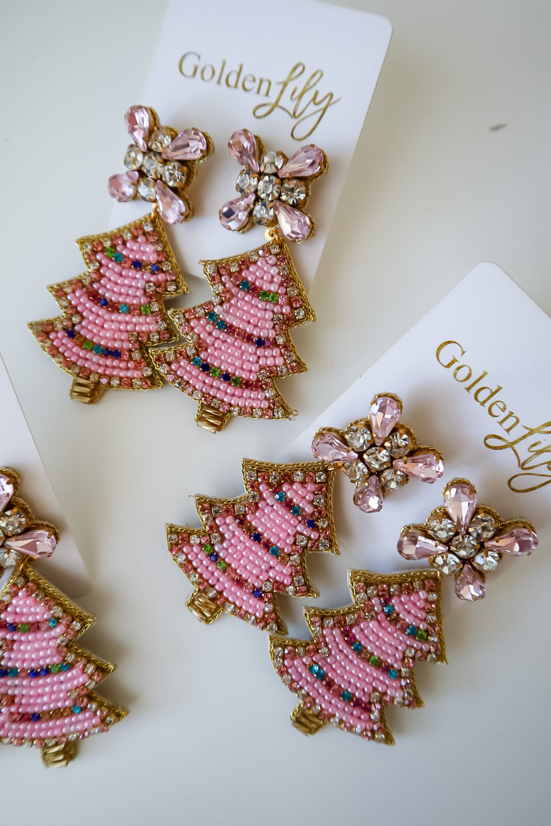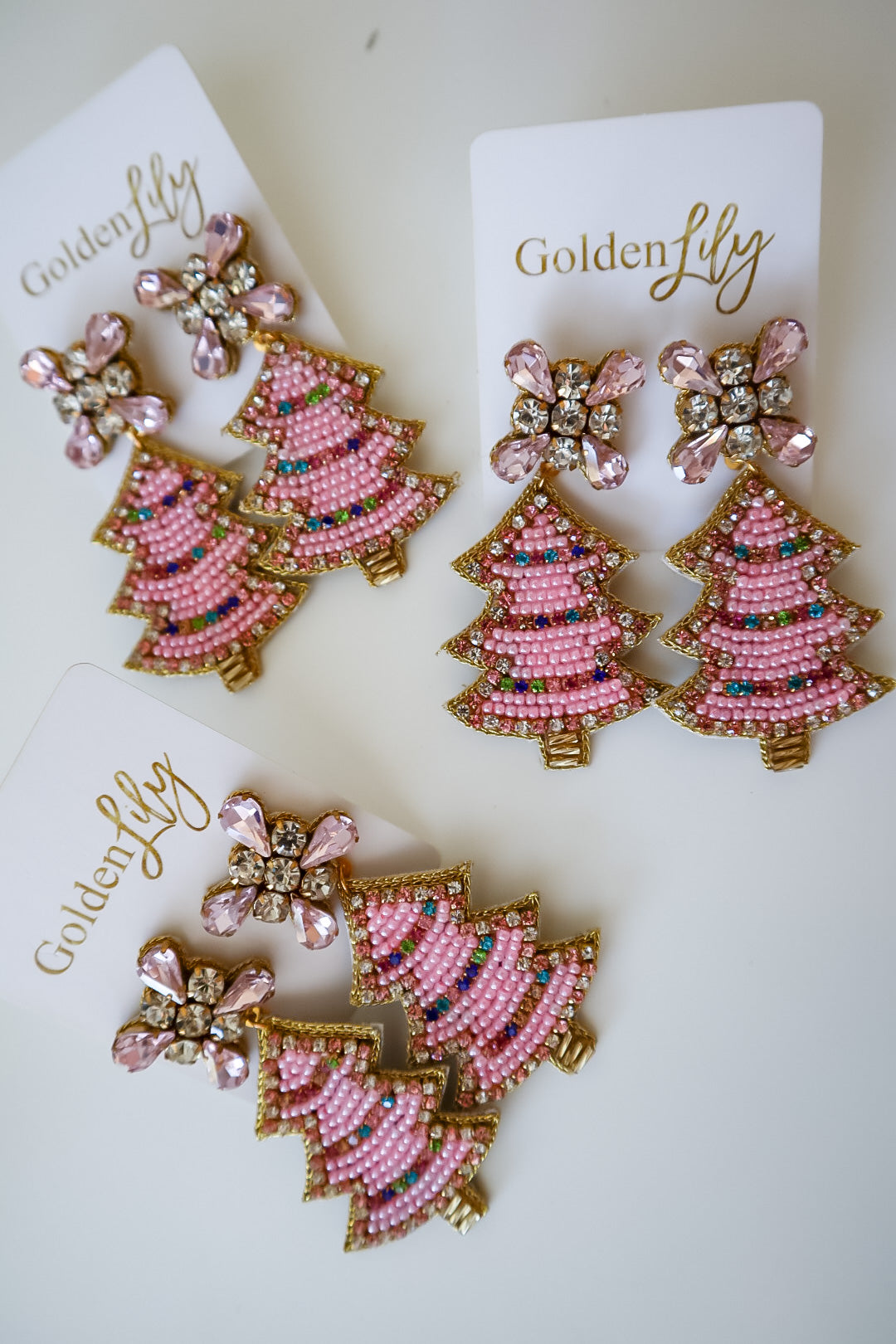 Golden Lily Exclusive. These hand beaded Sparkle Christmas Tree Earrings are fun and festive to wear all through out Holiday season.  Length: 2.5 inches  Post Back  Lightweight