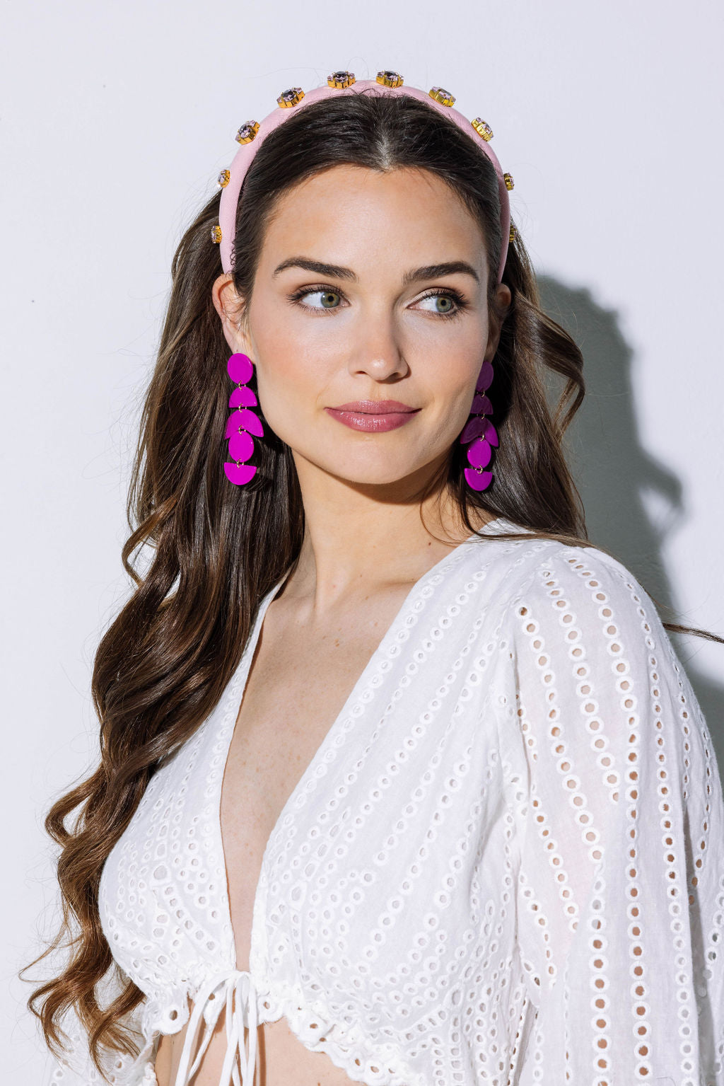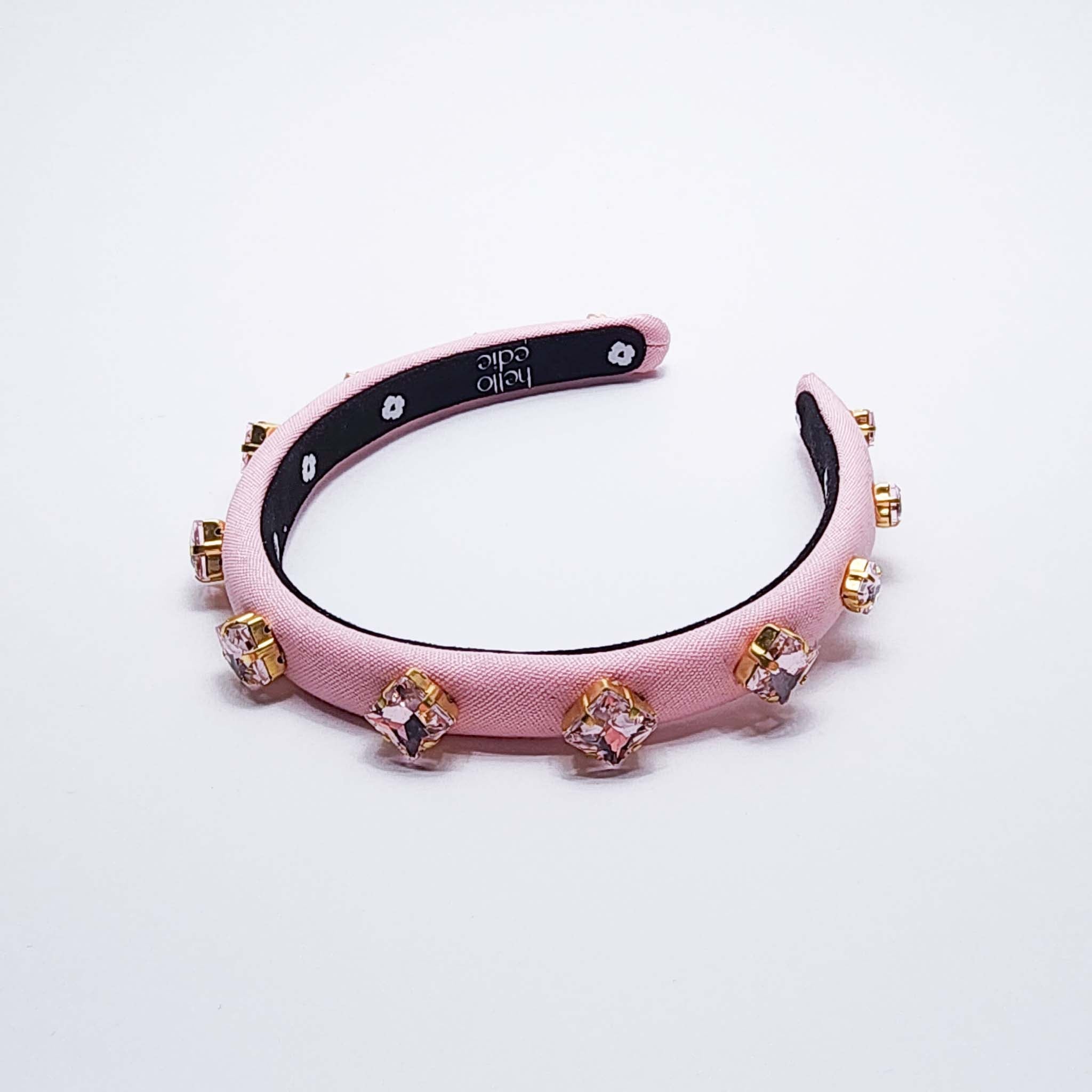 Introducing the Blair Embellished Ultra Slim headband from Hello Edie. This stylish accessory is perfect for any occasion. Crafted from a lightweight material, it features a slim design and is embellished with large clear gemstones for a touch of sparkle.