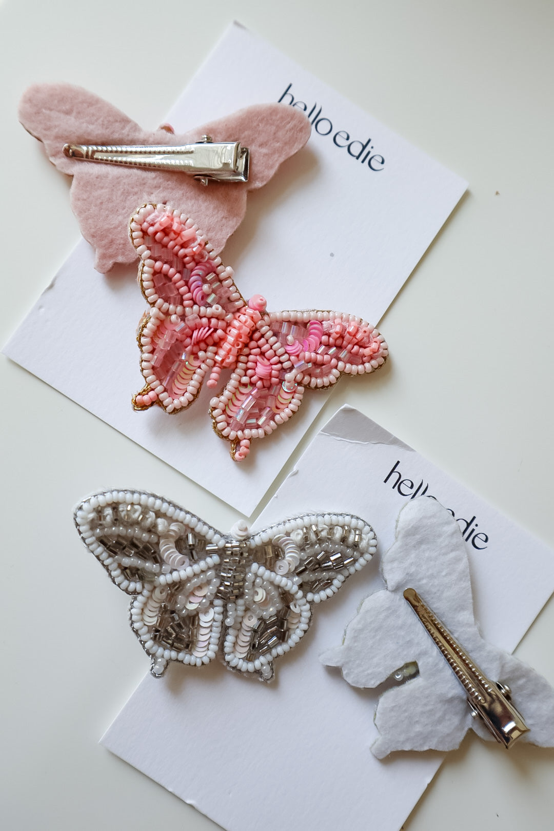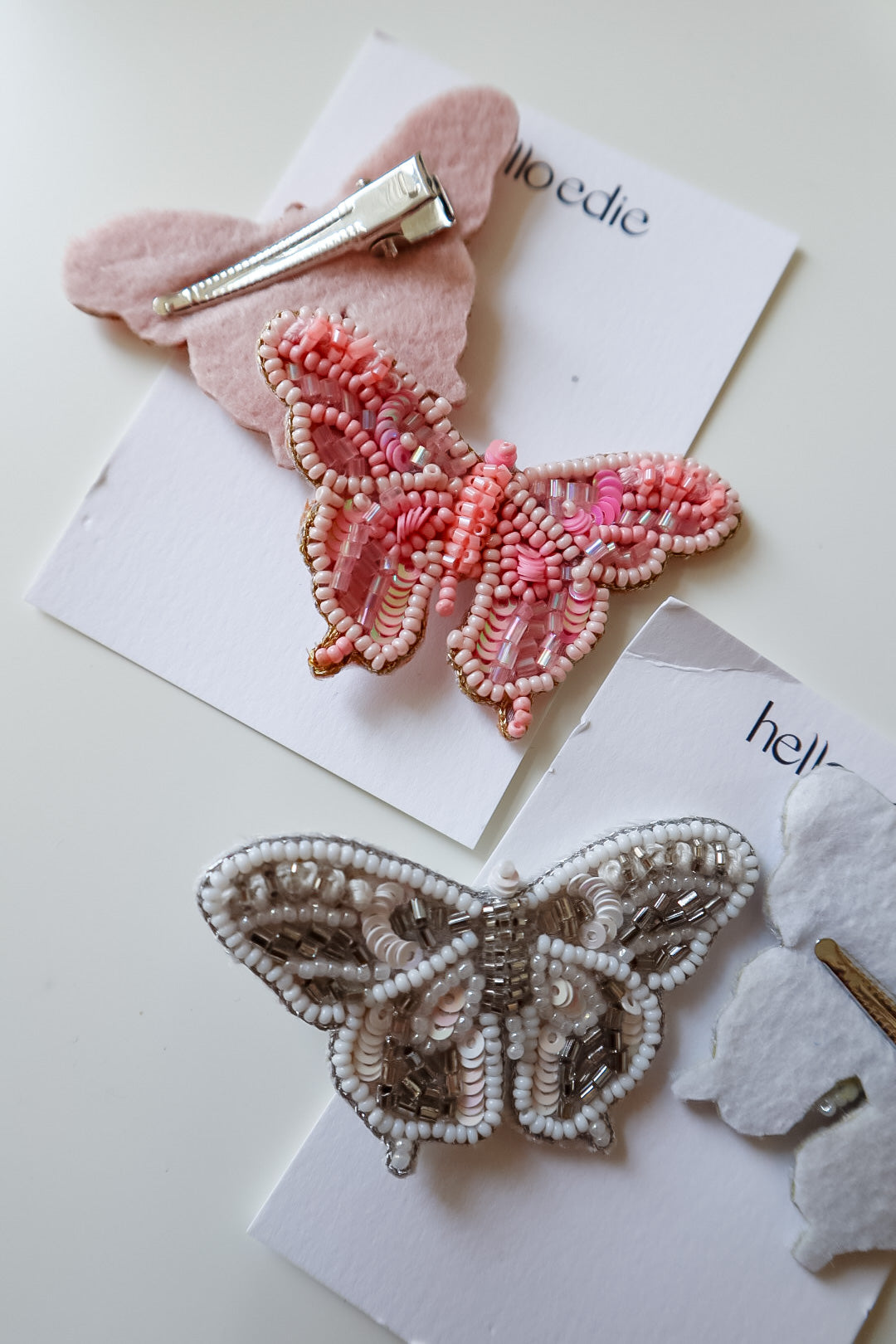 The Hello Edie Everly Butterfly Hair Clip adds a fun, whimsical twist to any hairstyle. Crafted with a beaded design, it's perfect for adding a little bit of joy to your day.
