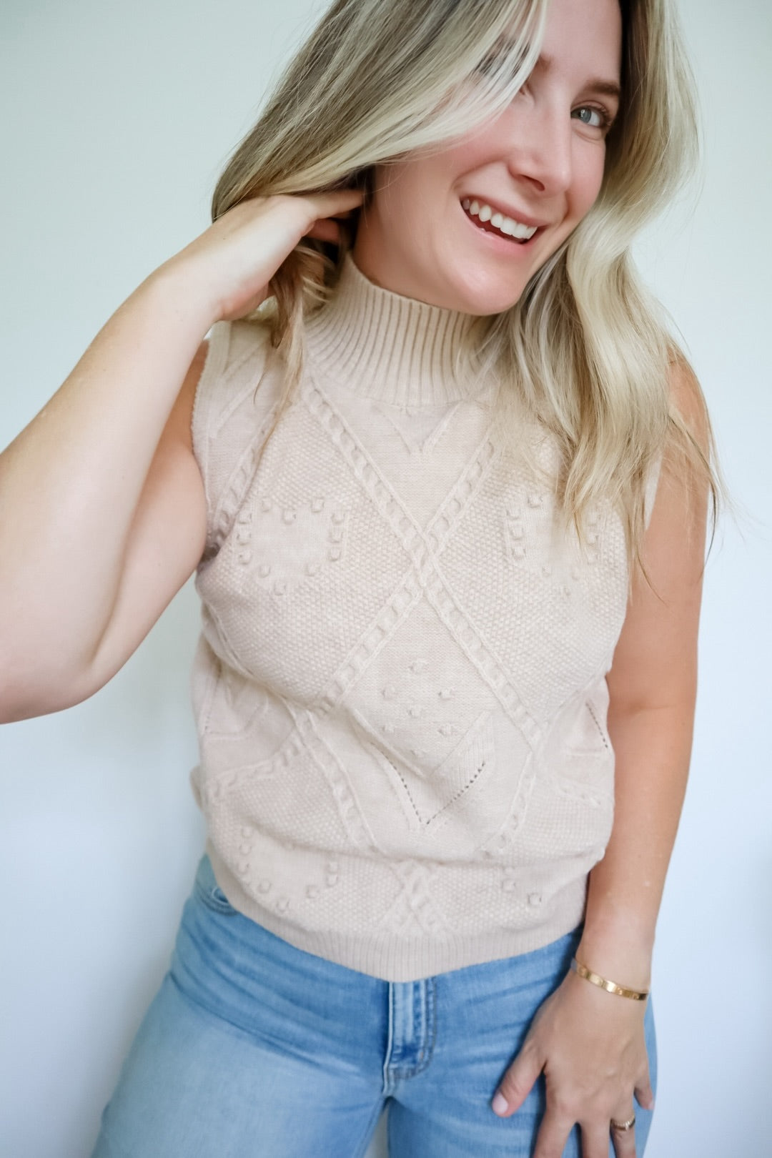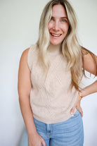 Julia Cable Knit High Neck Sleeveless Sweater