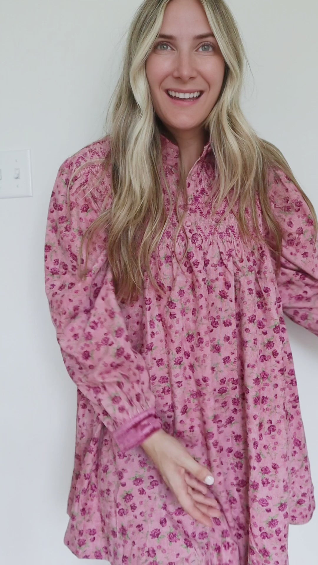 Embrace fall with the Sandra Smocked Floral Print Corduroy Dress, combining comfort and style effortlessly. Its soft corduroy fabric provides warmth and a cozy feel, while the delicate smocked detailing ensures a flattering fit. The subtle floral print adds a touch of charm, making it perfect for both casual days and stylish outings. This dress balances cute and chic, ideal for updating your autumn wardrobe with a versatile piece.