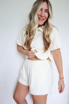 Stella Tweed Collar Short Sleeve Top And Shorts Set
