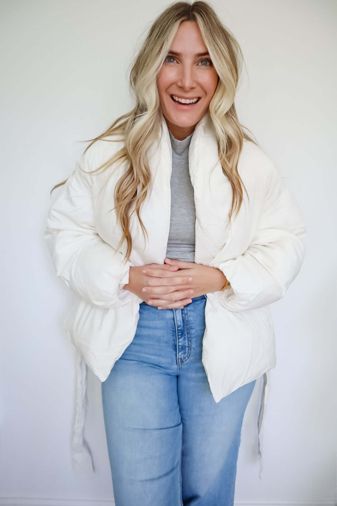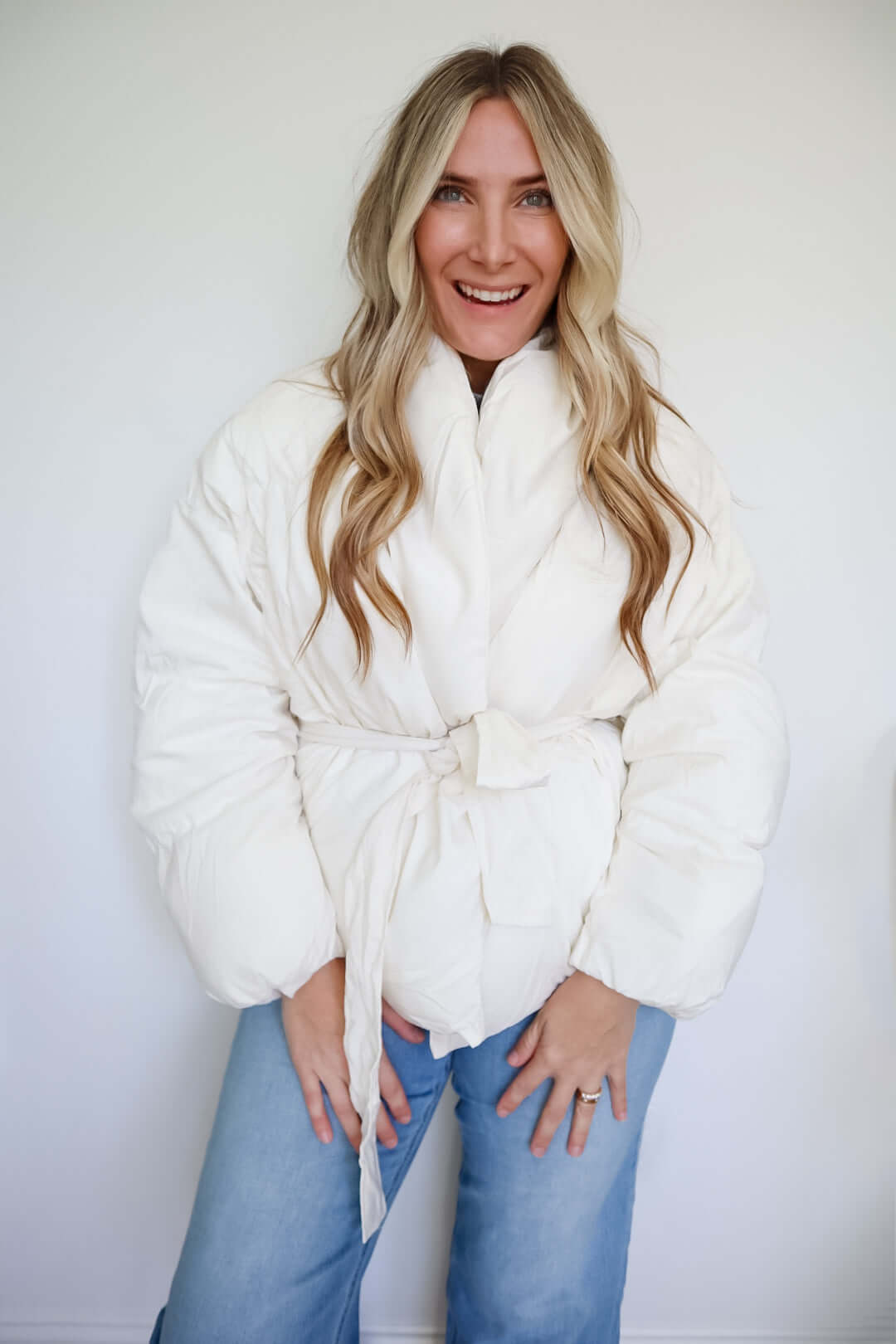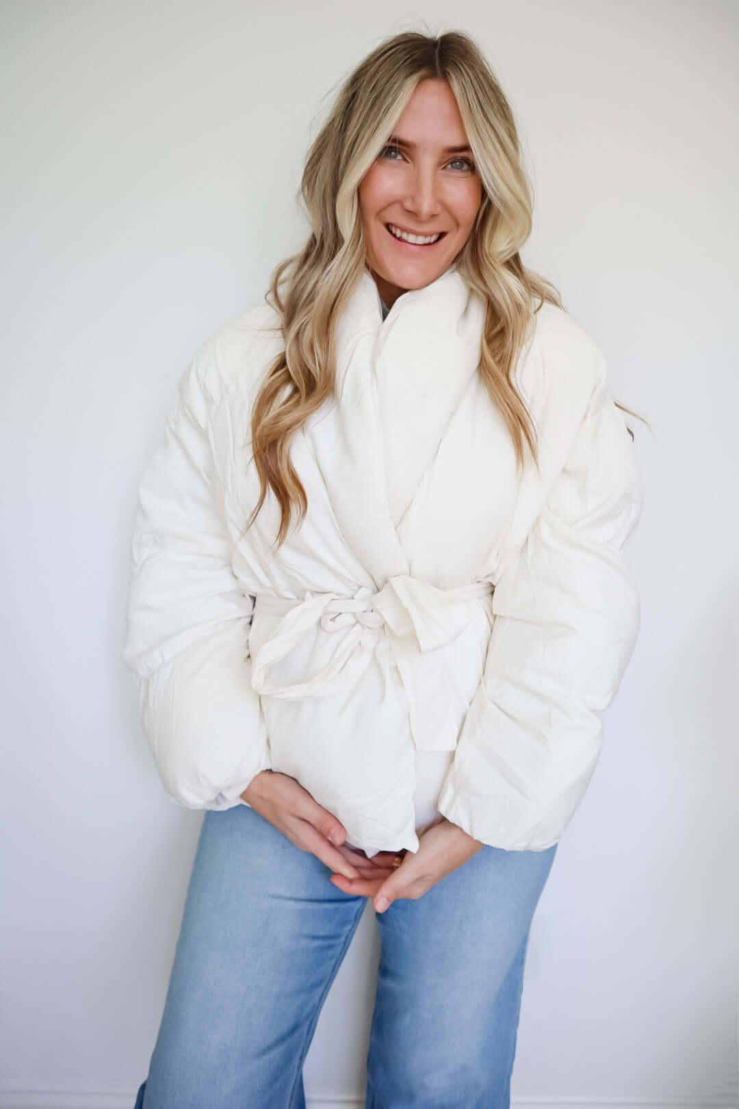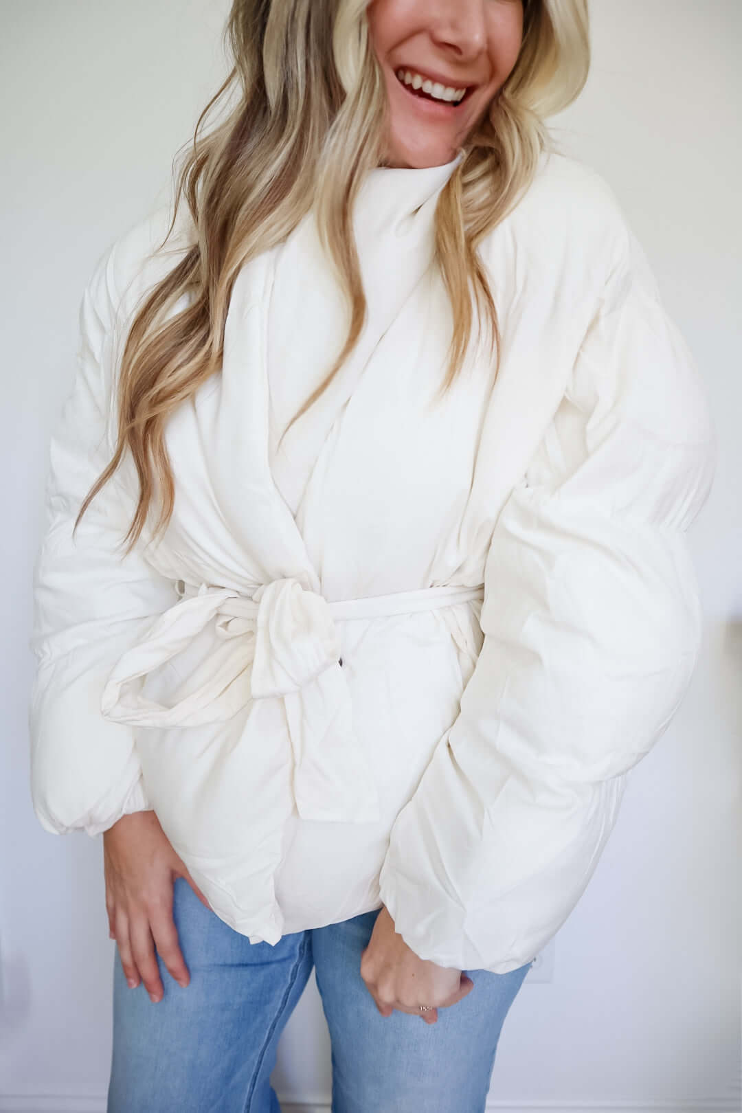 The Tara Waist Tie Puffer Jacket offers the perfect combination of softness, comfort, and warmth. Made with high-quality materials, this jacket will keep you cozy and stylish in any weather. With its waist-tie design, you can adjust the fit to your liking. Stay warm and stylish this winter with our Tara jacket.